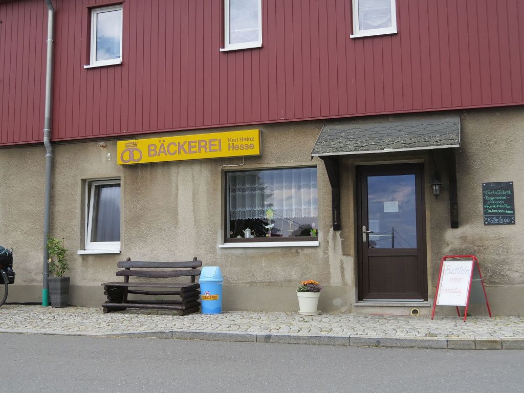 .. machte ich eine Pause. Dort wurde ich von einer Frau mit Ihren beiden Enkeln angesprochen und Sie erkundigte sich was, wie und wo ich mache. So sind wir nett ins Gespräch gekommen und Sie selber ist noch zu DDR-Zeiten rüber in Richtung Offenburg. Jetzt ist wieder, erstmal nur vorrübergehend, wieder in Ihrer alten Heimat. Sie stammt aus den Nachbardorf Steinbach und ist hier in der Kirche getauft worden.