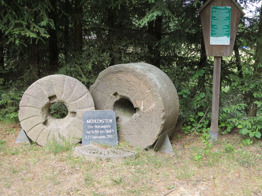 Auf dem Grenzweg weiter nach Reitzenhain stehen noch diese beiden alten Mühlsteine.
