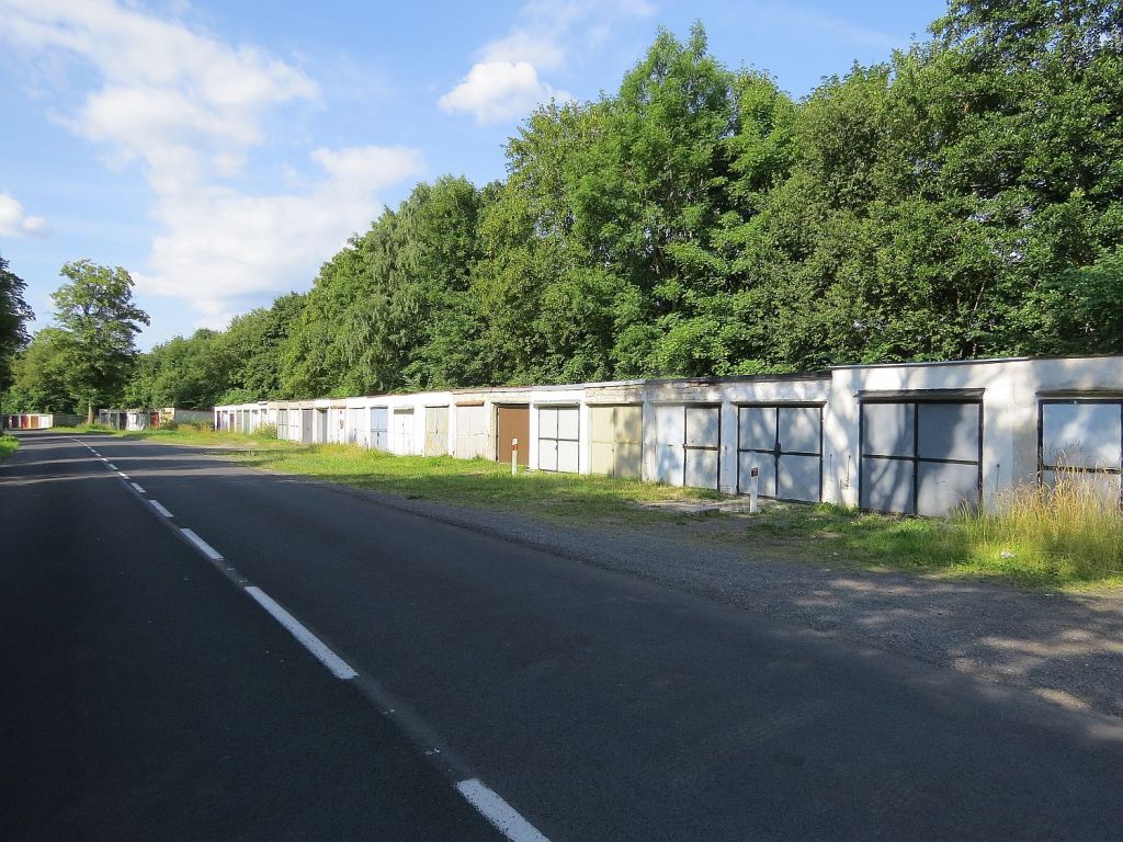 An einem großen Garagenhof vorbei ..
