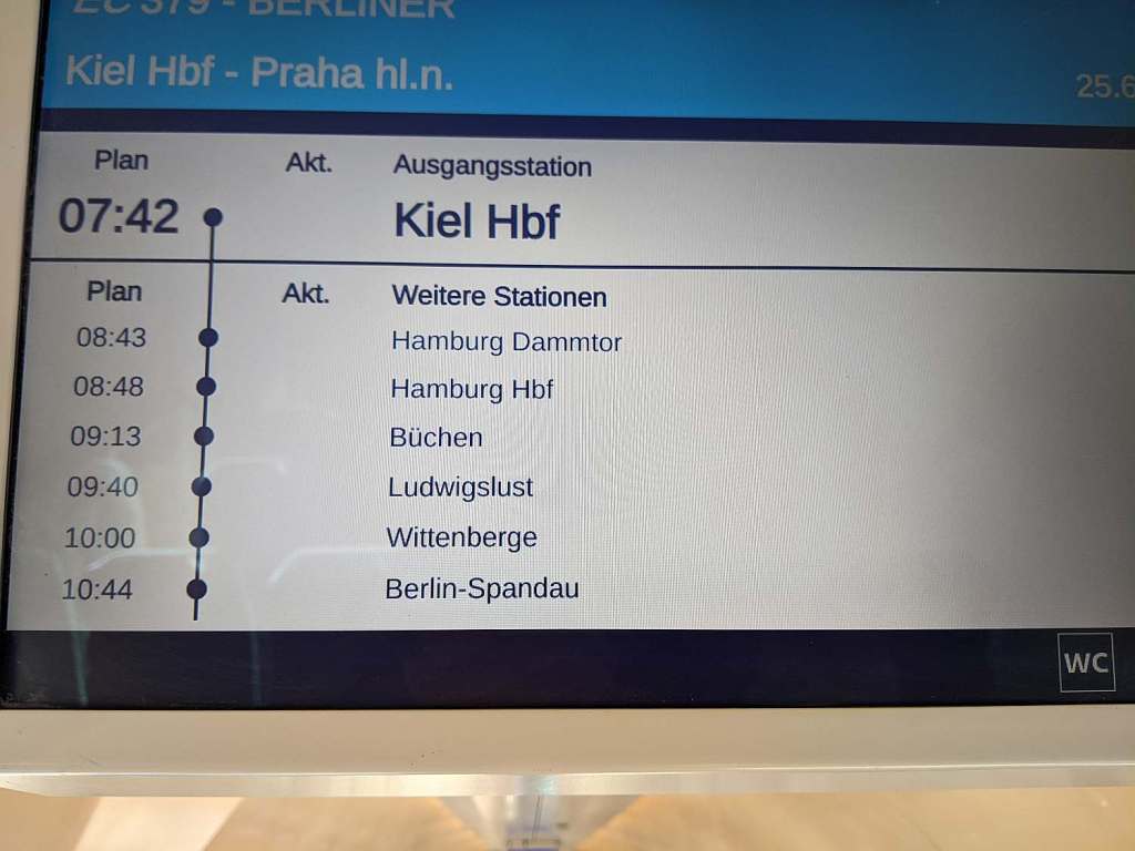 ging es mit dem Rad nach Kiel zum Bahnhof. Um 07:42 sollte mein EC mich nach Wittenburg/Elbe bringen.