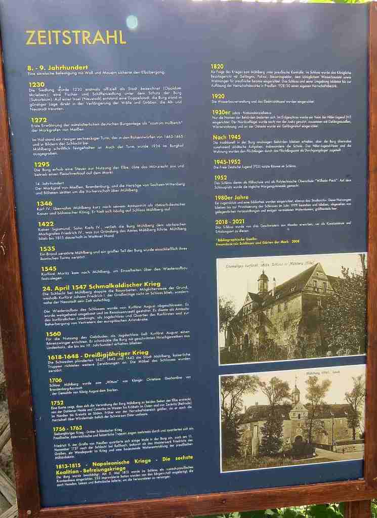 Und wenig später war ich in Mühlberg – ohne Regen – angekommen. Trotz des Missgeschicks im Wald von Annaburg sind es insgesamt nur 2 km mehr geworden als geplant.
