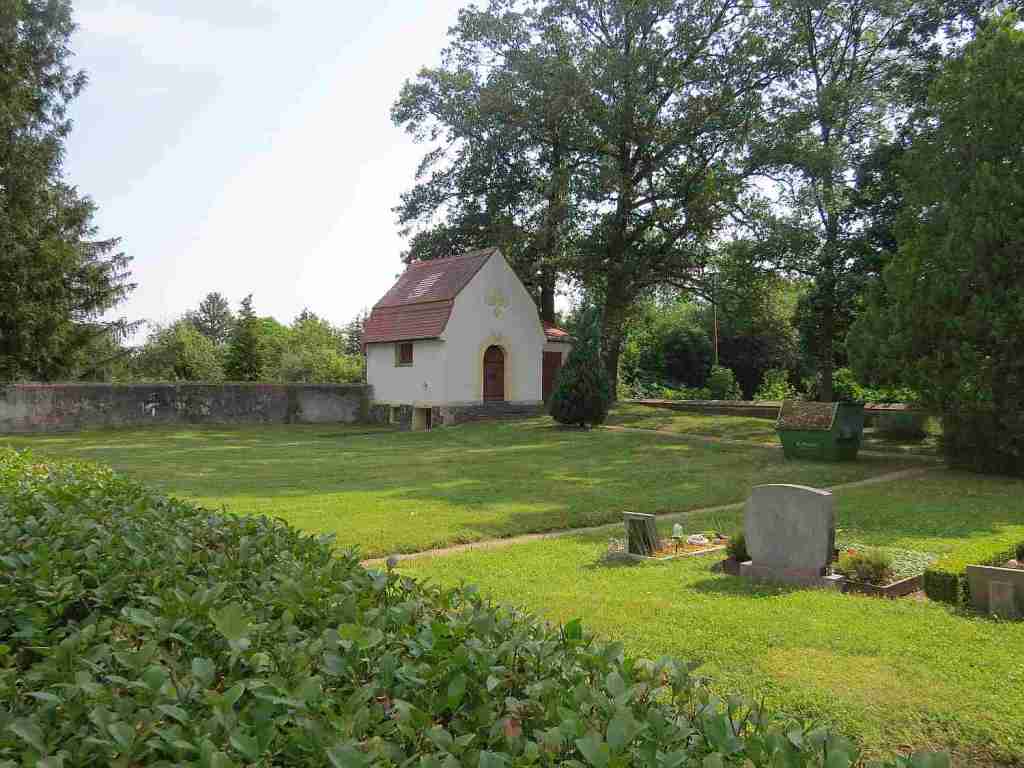 Bemerkenswert ist die alte Leichenhalle, bei der noch die Zufahrt in den Keller besteht. Früher wurden die Verstorbenen dort auf Steinplatten gelegt. Diese Steinplatten kühlten. Dazu kam die niedrige Temperatur im Kellerbereich. So konnte die Verwesung hinausgezögert werden.