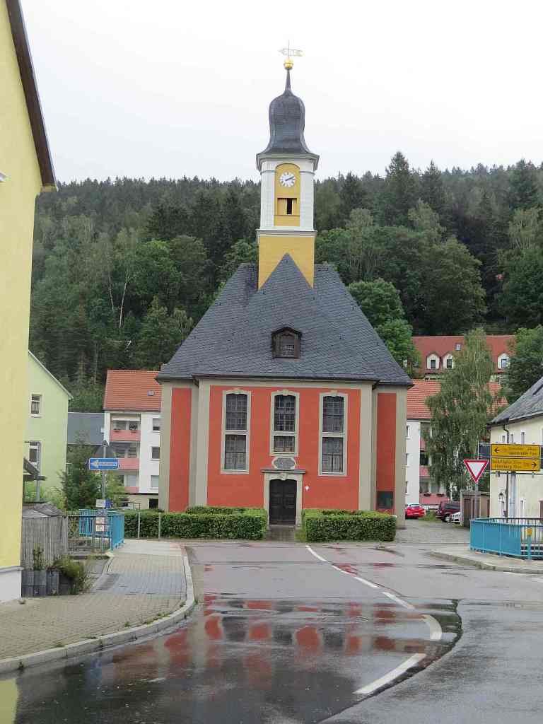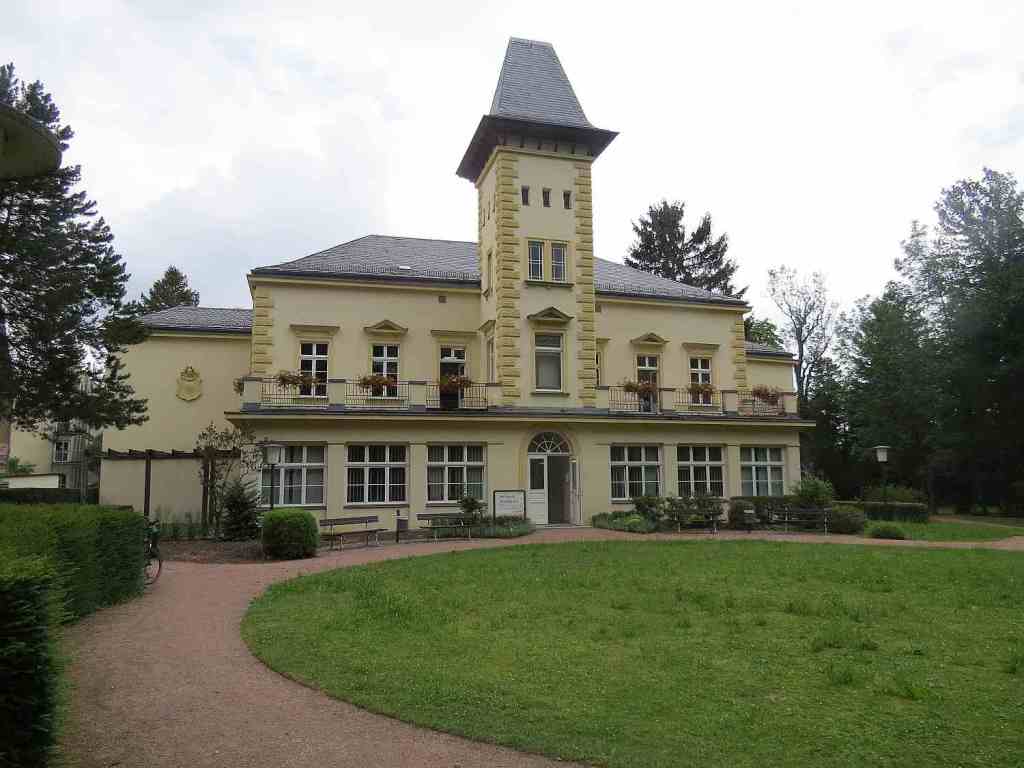 Nach einigen Bergauf- und Bergabpassagen fuhr ich nach Kreische hinein. Es gibt hier eine große Klinik mit Kurpark und einem hübschen Rathaus.