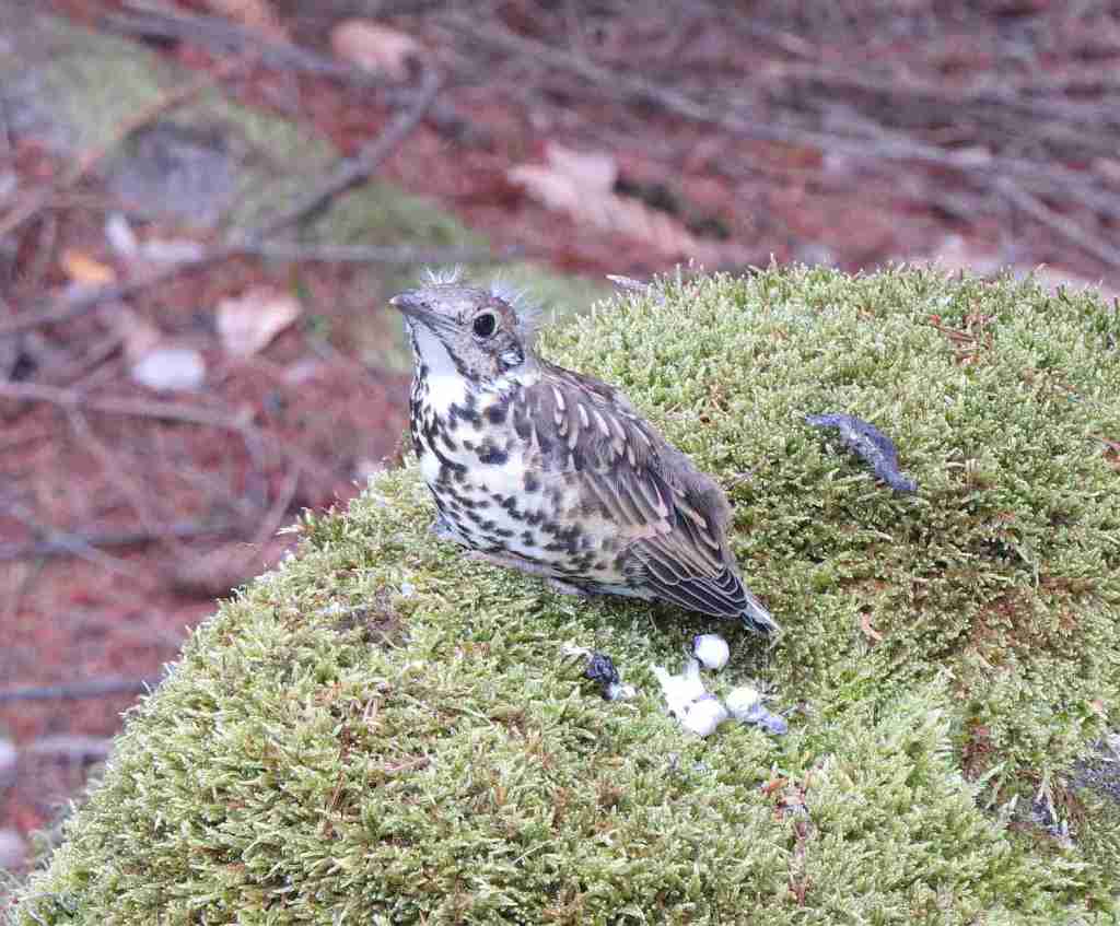 Unterwegs saß dieser Jungvogel auf einem Stein.