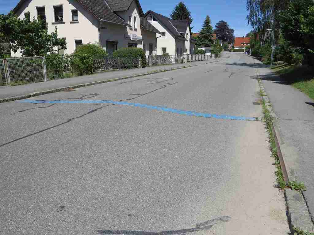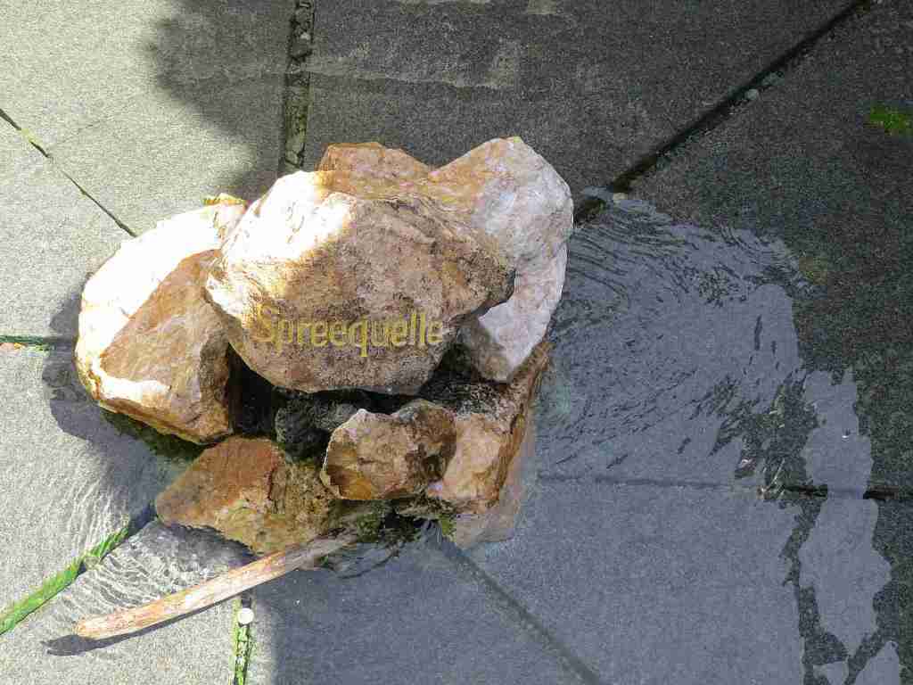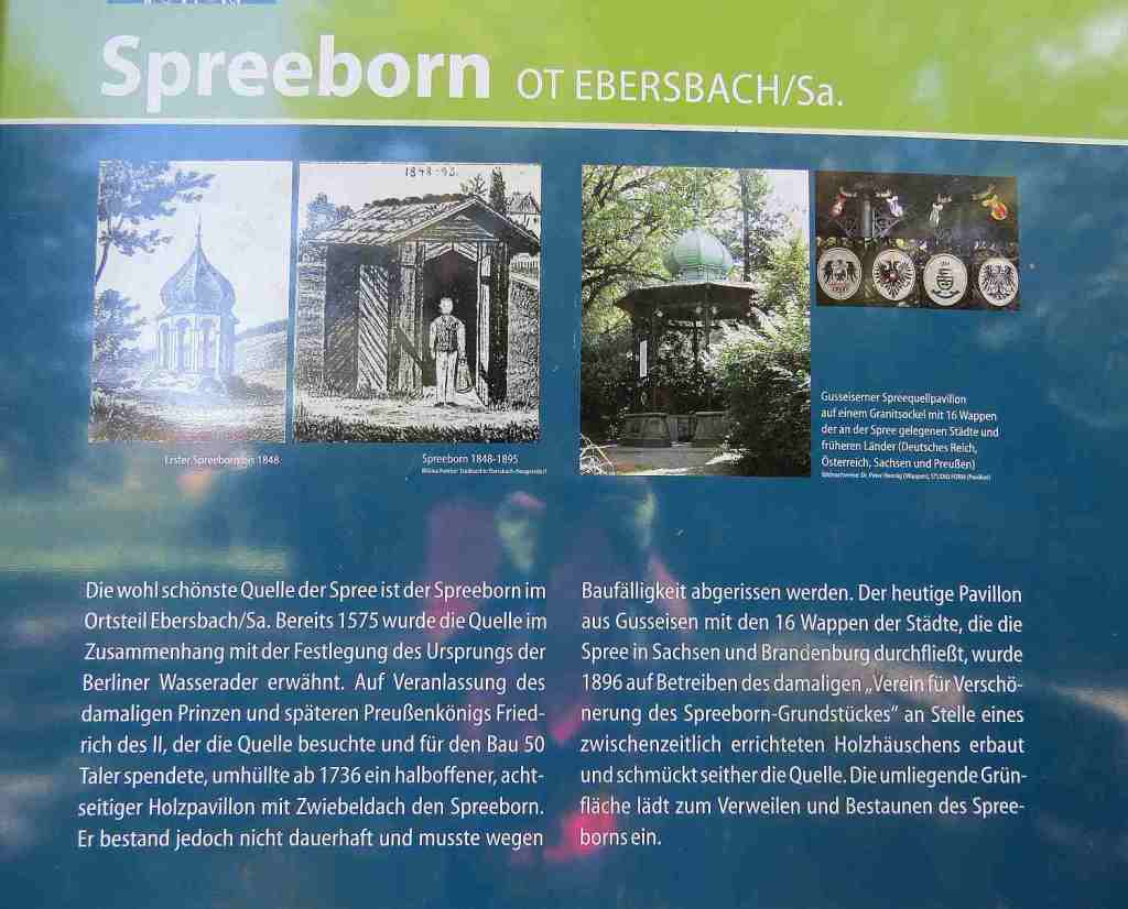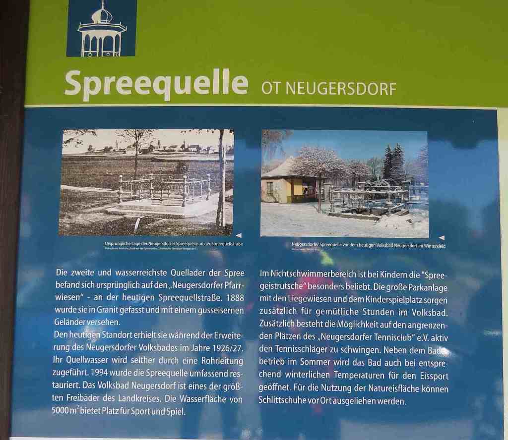 In der Ortschaft Ebersbach-Neugersdorf gibt es zwei Spreequellen. In jeden Ortsteil eine. Auf dem Weg dorthin erkennt man schon an der Bemalung der Straße hier fließt die Spree.