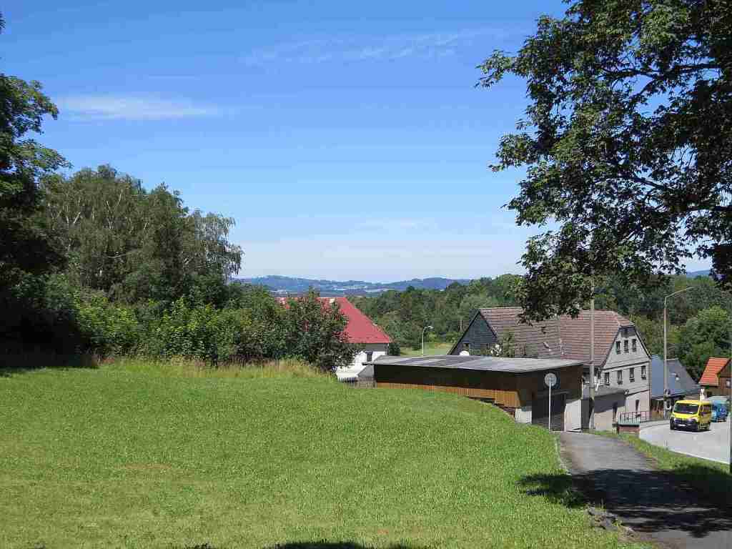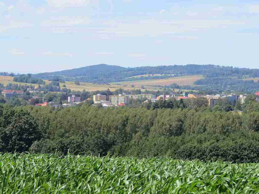 In der Ferne die Ortschaft Rumburk (Rumburg). Hier wurde nicht so viel am Ortsnamen verändert.