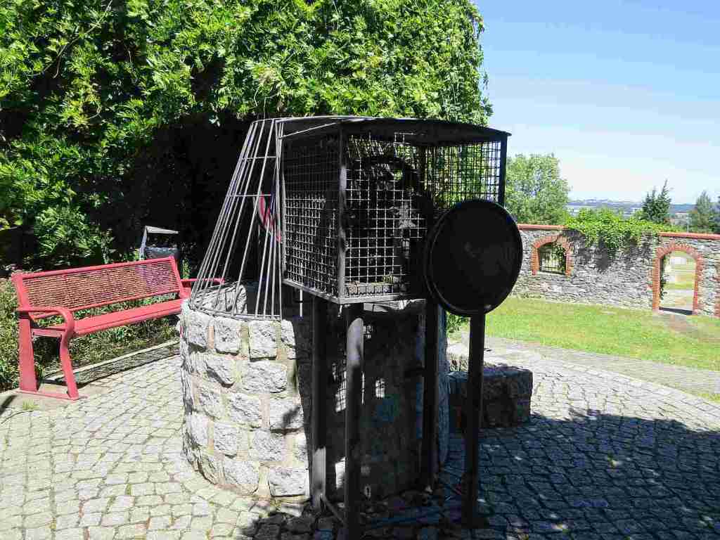 Gegenüber stand früher einmal eine Fabrik und der Bereich darunter wurde als Eiskeller genutzt. Heute ist es möglich mit dem Drehrad einen Eimer Wasser nach oben zu befördern.