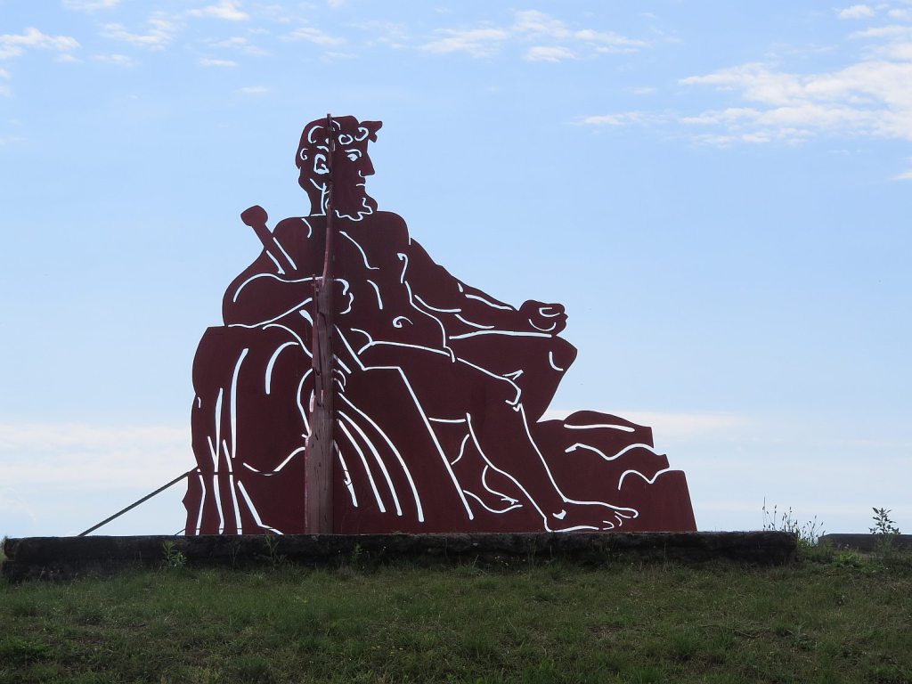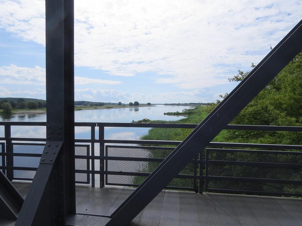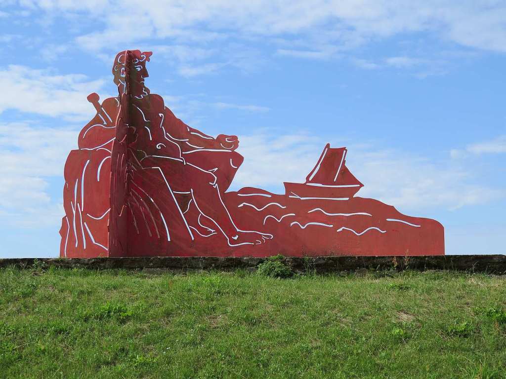 Zwischen Güstebieser Loose und Gozdowice fährt eine Fähre. Einmal kurz hingefahren und dieses Kunstwerk gesehen. Von jeder Seite ergibt sich ein anderes Bild. Die Fähre war allerdings noch nicht in Betrieb.