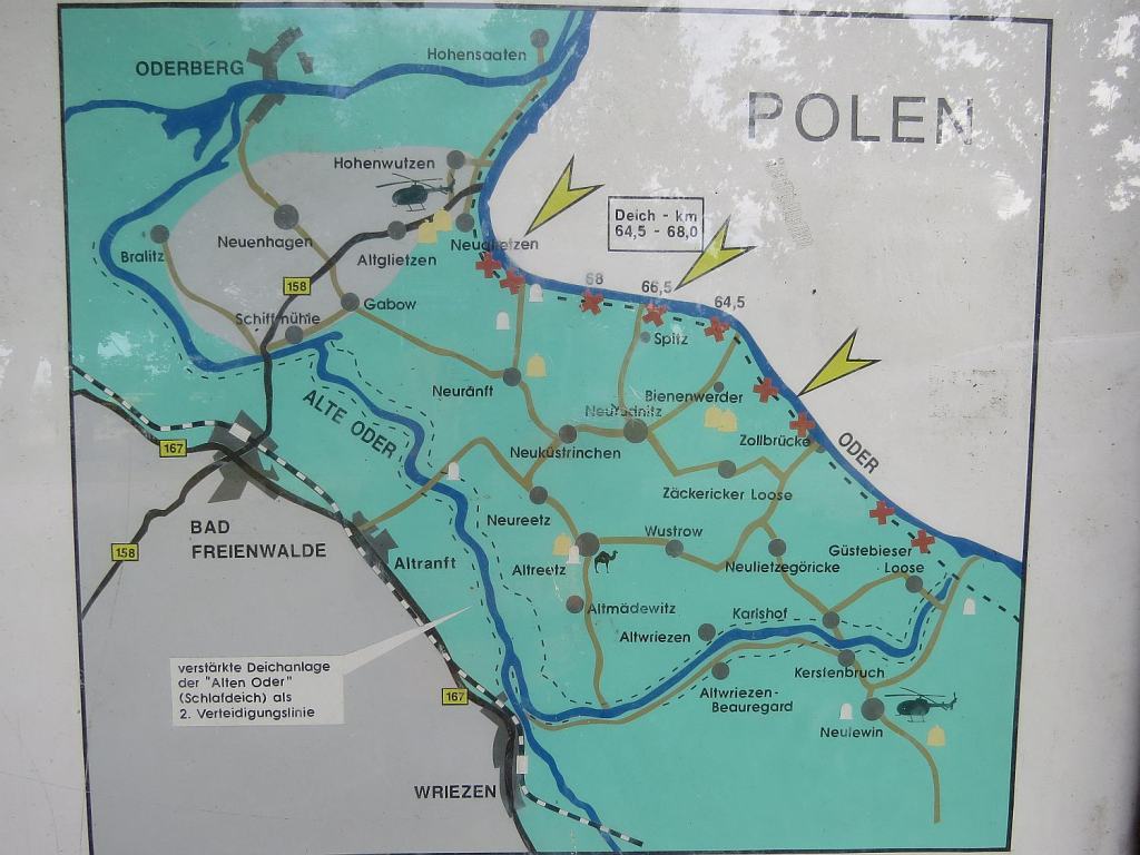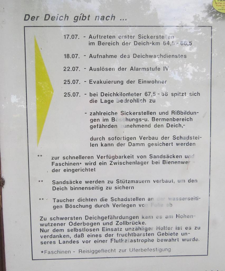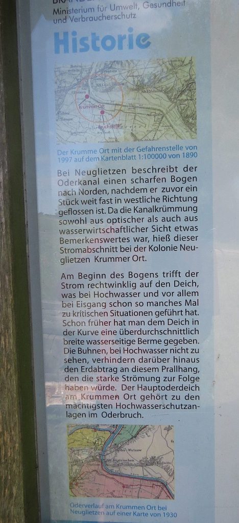 Ich bin also immer noch im Überschwemmungsbereich der Oder, wie mir auch später an einer Infotafel gezeigt wird.