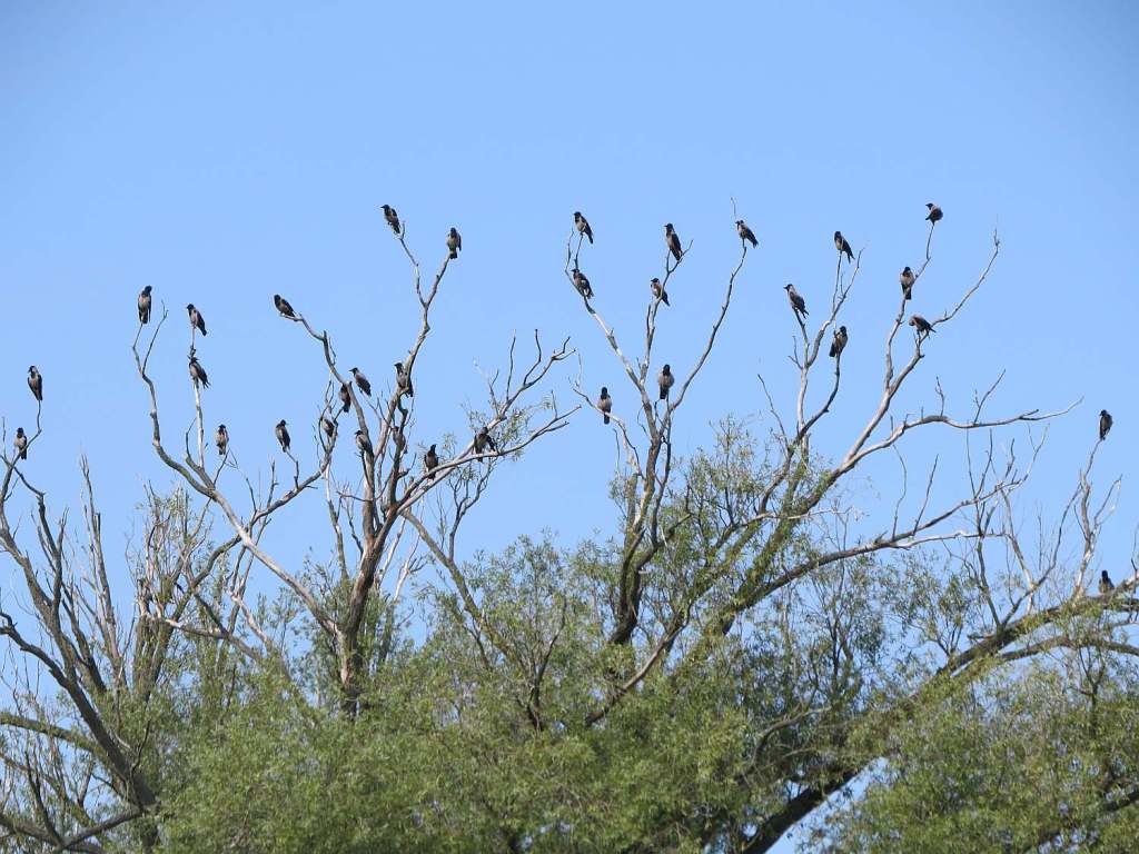 Ab hier herrschte auch dann sehr reger Radfahrbetrieb. Diese Dohlen/Krähen saßen trotzdem sehr entspannt auf dem Baum.