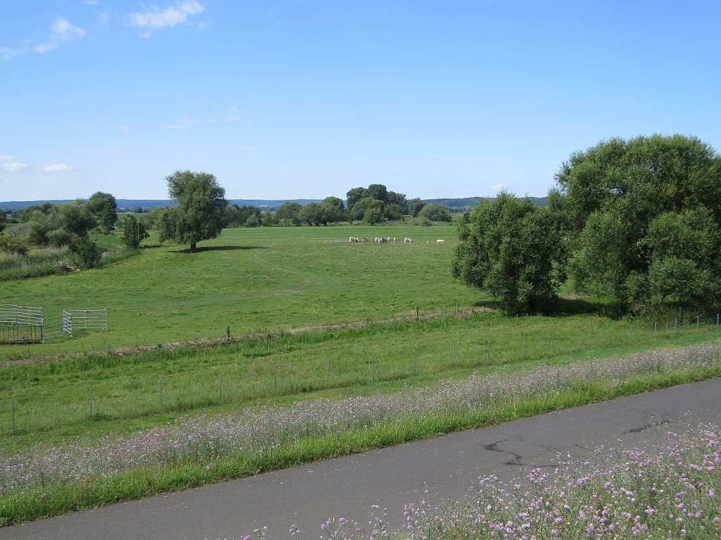 In machen Bereichen konnte man so bis zu 4 km geradeaus fahren. Gut, dass der Radweg fast immer oben auf dem Deich war…