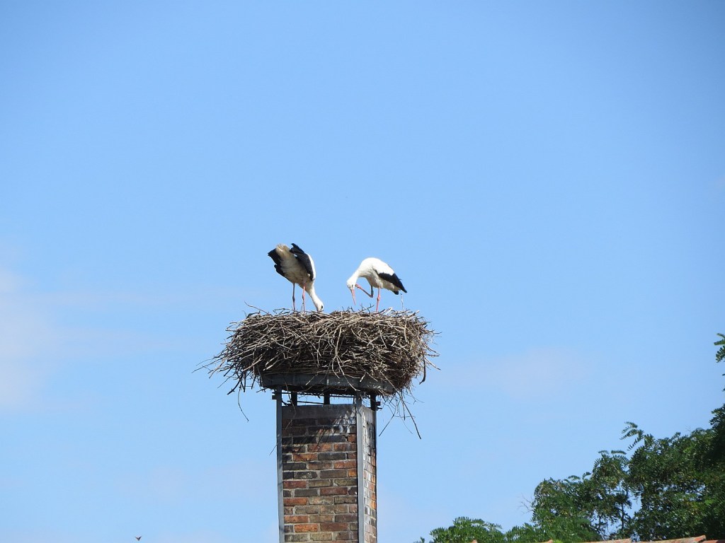 Mitten im Ort ein Storchennest.