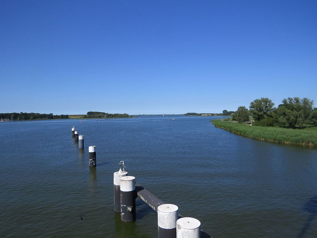 Hier ist die Peene schon sehr breit – die Mündung in die Ostsee ist fließend.