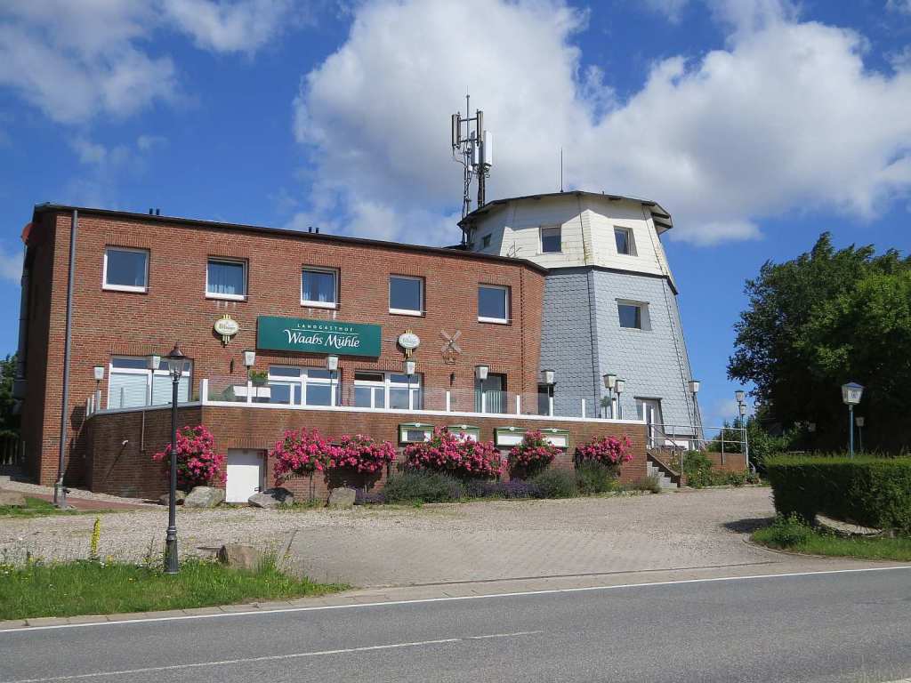 Vor Waabs eine alte Windmühle ohne Flügel.