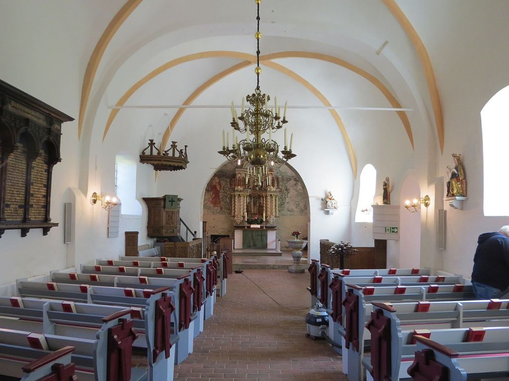 Ich habe schon viele Kirchen besichtigt. Hier hatte ich zum ersten Mal den Küster mit Staubsauger bei der Arbeit getroffen. Später dann noch in der Kirche von Karby gewesen. Die Deckenmalereien sind erst vor kurzen wieder freigelegt worden.