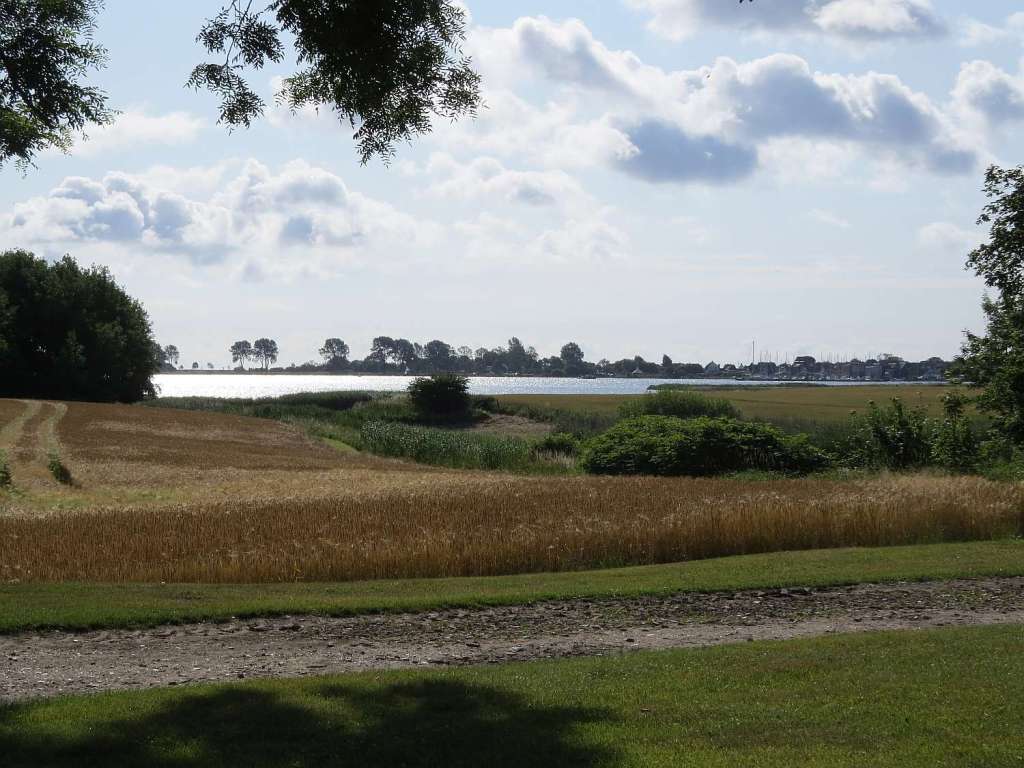 Im Großen und Ganzen bin ich auch den Ostseeküstenradweg gefahren. In Stutebüllfeld bin ich in Richtung Massholm abgebogen und in Buckhagen hatte ich diesen Blick auf die Schlei und einen Gutshof mit Übernachtungsmöglichkeiten.