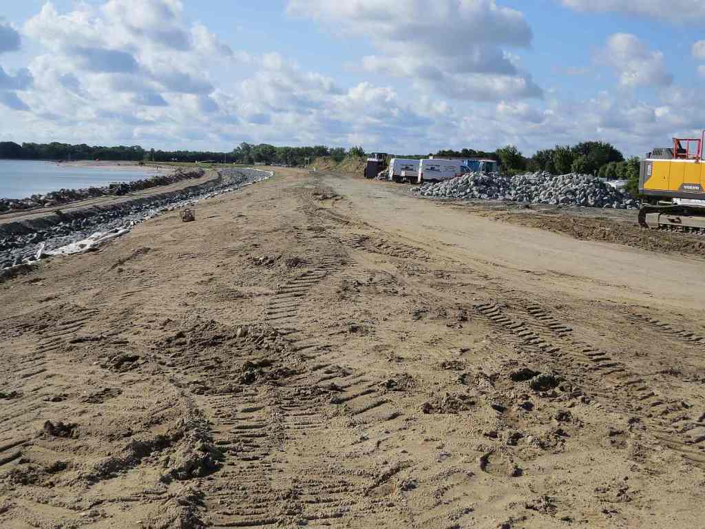 Bei Hasselberg wieder an den Strand gekommen. Hier laufen noch Instandsetzungsarbeiten.