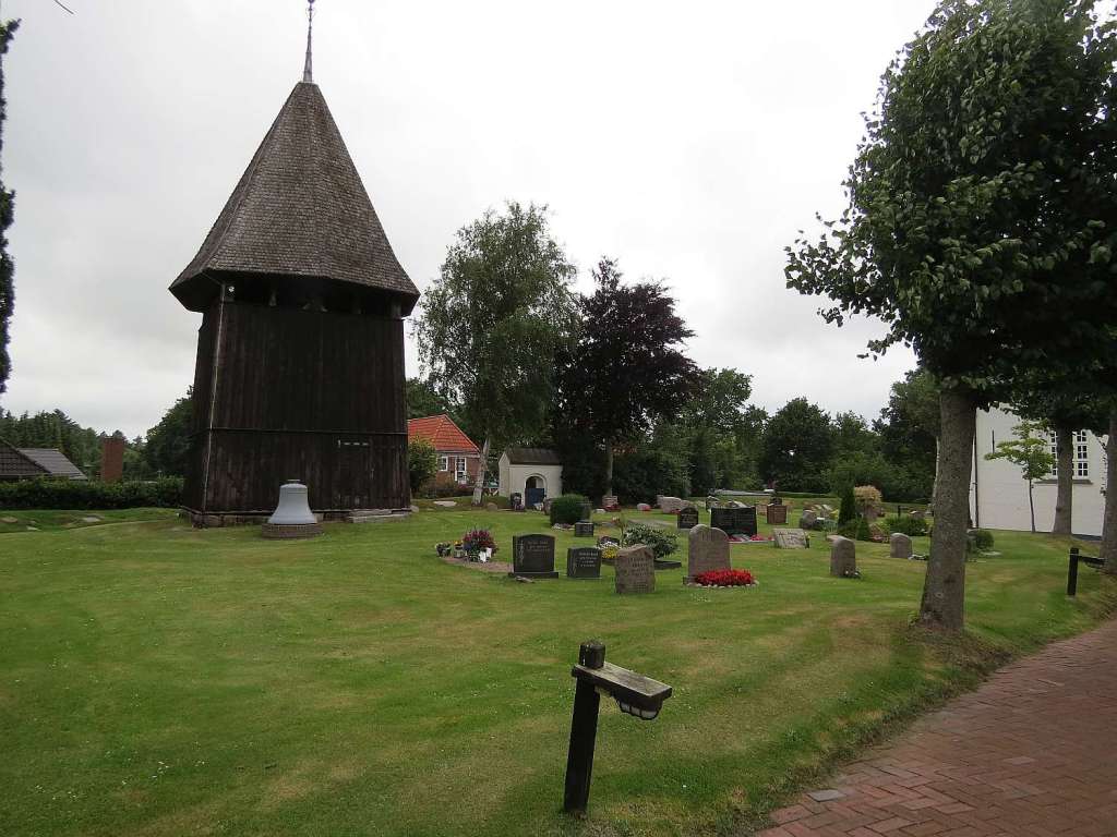 Die alten Grabsteine sind im Erdwall als Stütze angebracht worden. Auch eine gute Idee, wie ich finde.