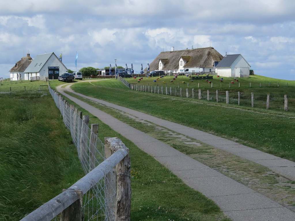 Da gutes Wetter war und ich bisher Schiebewind hatte, konnte ich den 4km Abstecher über dem Damm zur Hamburger Hallig machen. Auf dem Hinweg gab es Gegenwind. Über diesen Weg ..