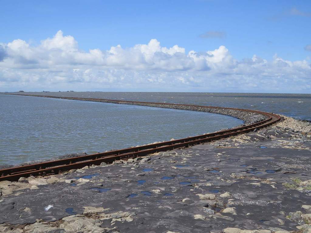 Im Bereich des Leuchtturmes geht die Lorenbahn rüber zur Hallig Oland.