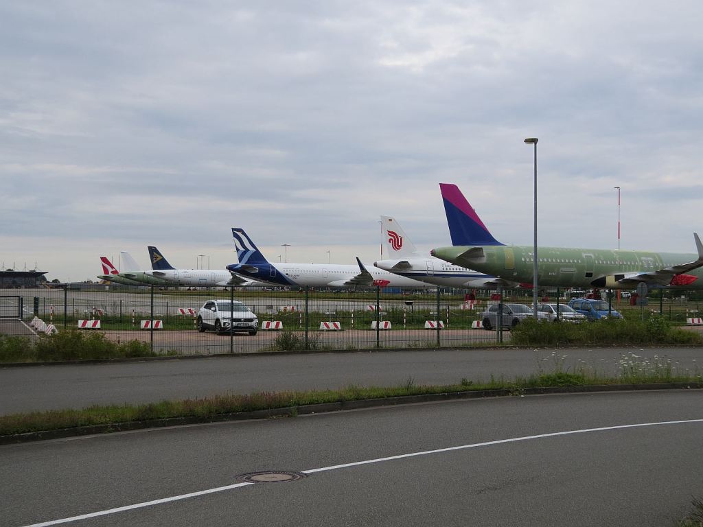 Ich Grüße alle Leser und Wünsche für morgen einen schönen Sonntag. Heute ging es vom Rand der Großstadt Hamburg wieder ins Ländliche. Dies hat aber eine ganze Weile gedauert. Der Radweg (an vielen Stellen nicht befahrbar) ging immer an der Küstenstraße entlang bis Stade. Da war es gestern auf der anderen Elbseite ruhiger und keine Autos. Aus Finkenwerder raus geht es am Airbuswerk vorbei. Viele Einblicke hat man nicht, da das gesamte Gelände eingezäunt und von Sträuchern eingewachsen ist. An einer Zufahrt konnte ich dann doch einige Maschinen, die hier wohl auf die Auslieferung warten, sehen.