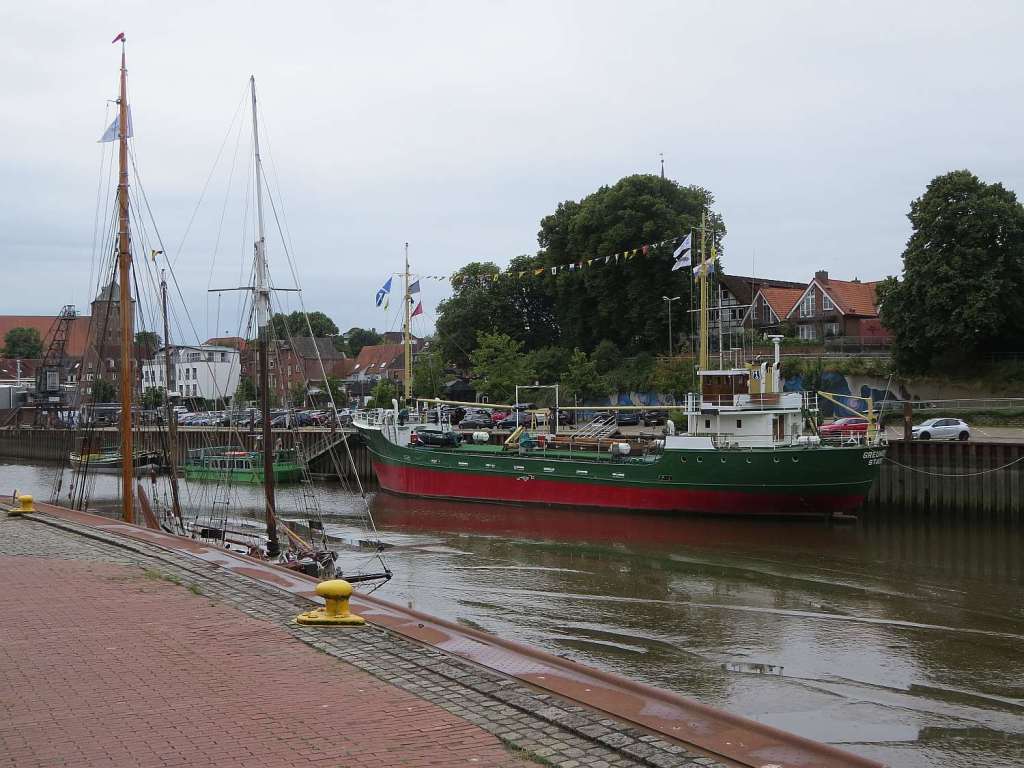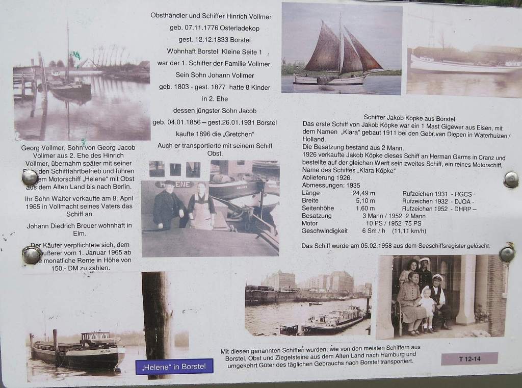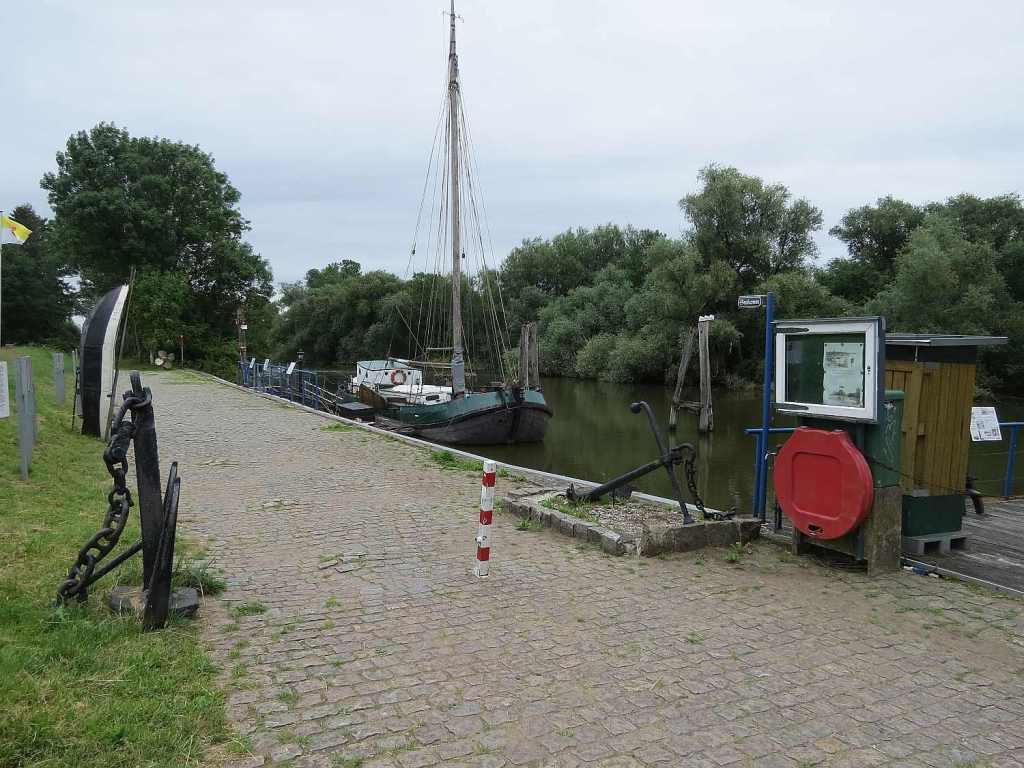 Zum alten Hafen von Borstel. Hier liegt nur noch die Tjalk Annemarie. Die vorhandenen Infoschilder sind leider etwas in die Jahre gekommen.