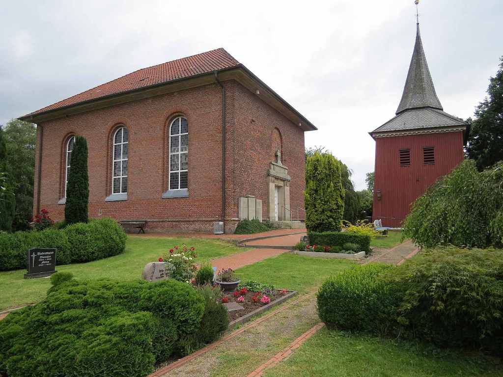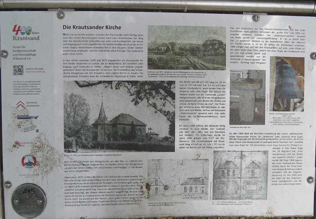 Da das Sperrwerk der Wischhafener Süderelbe erst um 17:00 Uhr für Radfahrer öffnet, bin ich aber Krautsand über Dornbusch nach Wischhafen gefahren. Vorher aber noch die viereckige Kirche des kleinen Ortes Krautsand fotografiert.