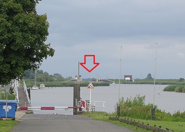 Vom Fährhaus, meinem Übernachtungsplatz, habe ich einen Blick zum Sperrwerk mit der Brücke. Und wie man sehen kann, ist zu für Schiffe geöffnet.