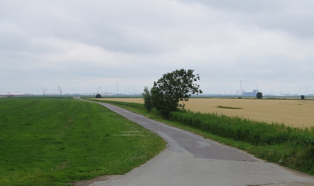 Von dort bin ich geradewegs durch die Felder zum Außendeich gefahren, um noch einmal nach Brunsbüttel schauen zu können.