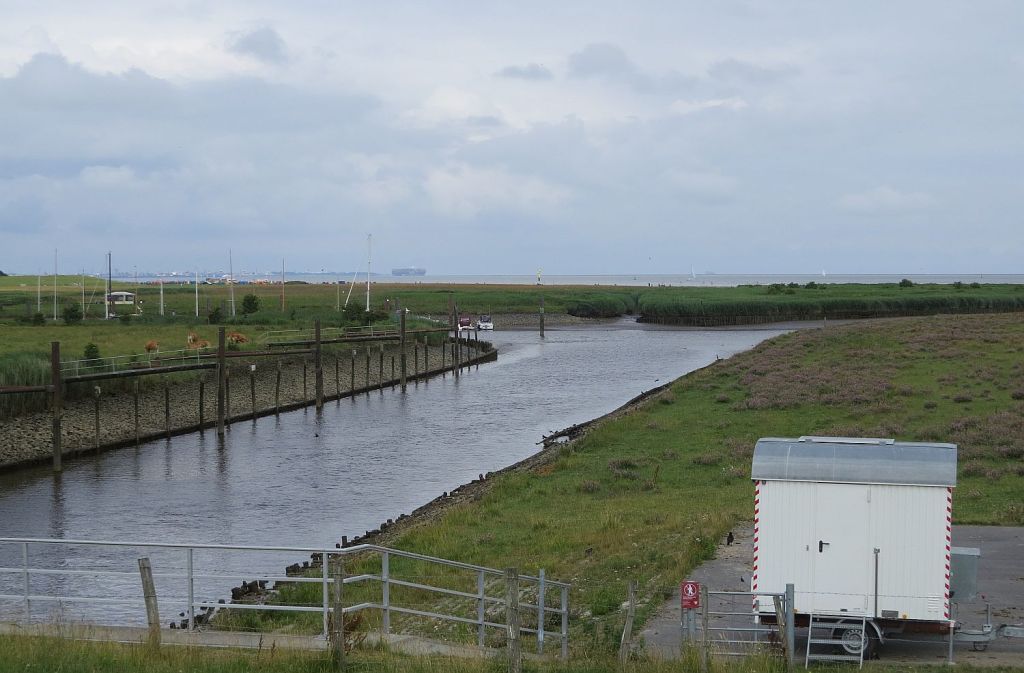 … zunächst jedoch an der Mündung des Kanals und des kleinen Bachs Medem vorbei, der dort in die Nordsee fließt.