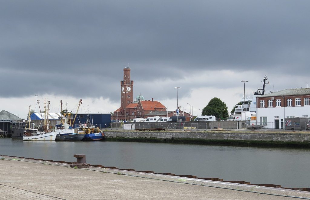 Große Schiffe sind hier beim Ein- und Auslaufen in die Elbe zu beobachten.