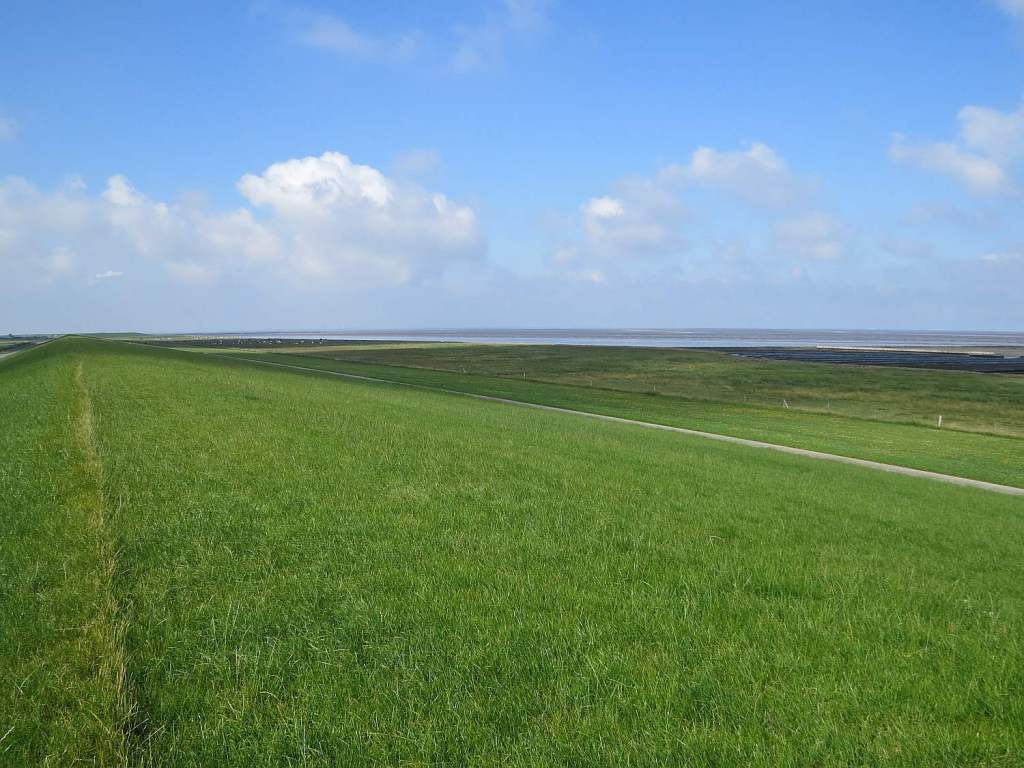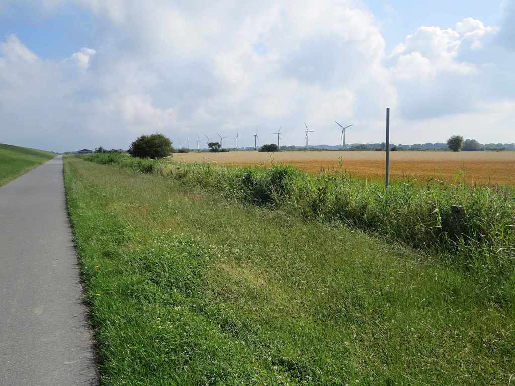 … aber den Menschen in Padingbüttel war es wichtig, ihm ein kleines Denkmal zu setzen. Wie schon in den letzten Tagen ging es immer entlang des Deiches. Die Windräder standen noch still.