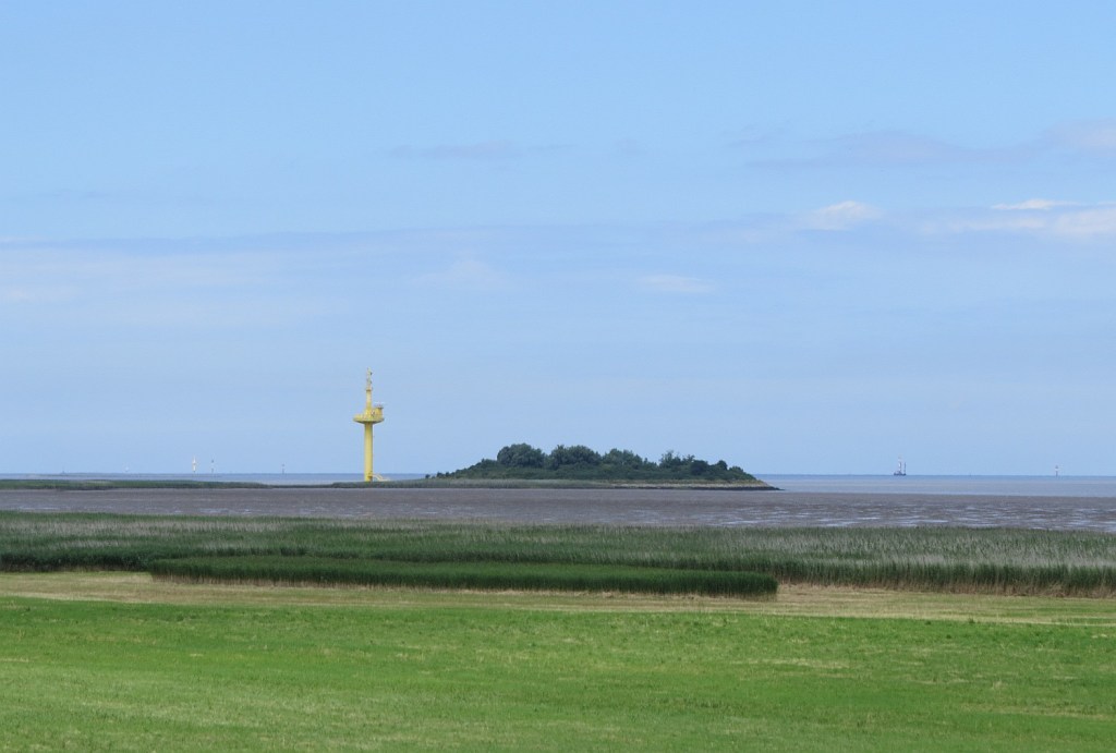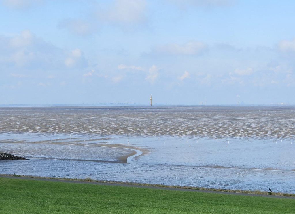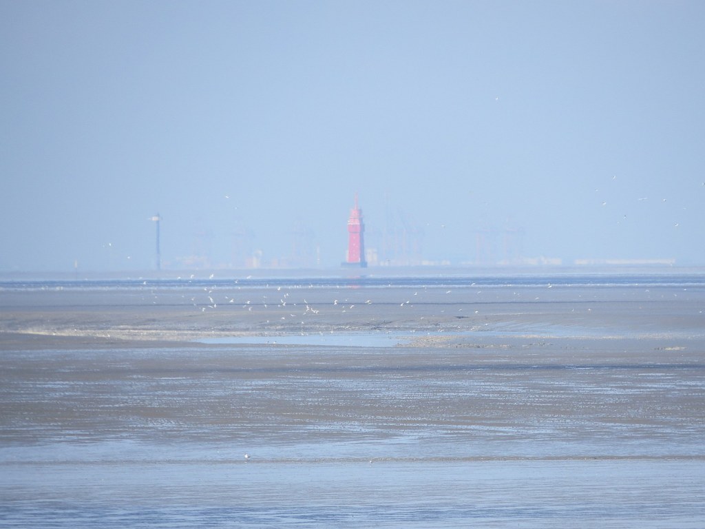 Noch hatte ich einen freien Blick zur Nordsee. Von links mündet die Weser in die Nordsee.