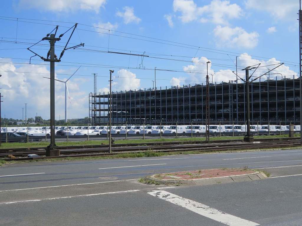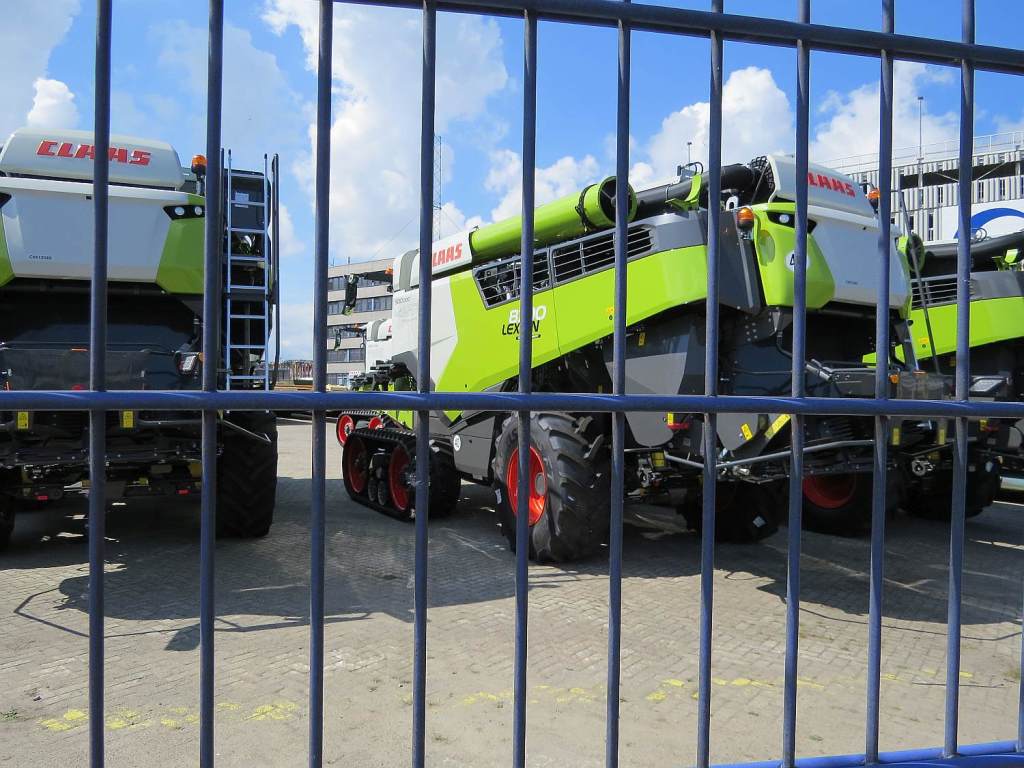 Bekannt ist Bremerhaven auch für den Autoexport. Insgesamt habe ich fünf Transportschiffe gesehen sowie zwei riesige Parkhäuser und große Stellflächen davor. Was hier an Werten herumsteht – unglaublich. Auch Traktoren, Mähdrescher und sogar Fräsmaschinen für Asphalt werden hier verladen.