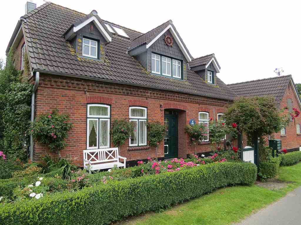 „Die ehemalige Mühle ist eingebettet in einem herrlichen Garten, umgeben von Wiesen am Rande des idyllischen Erholungsortes Ruhwarden in der Mitte der Urlaubs-Halbinsel Butjadingen. „
