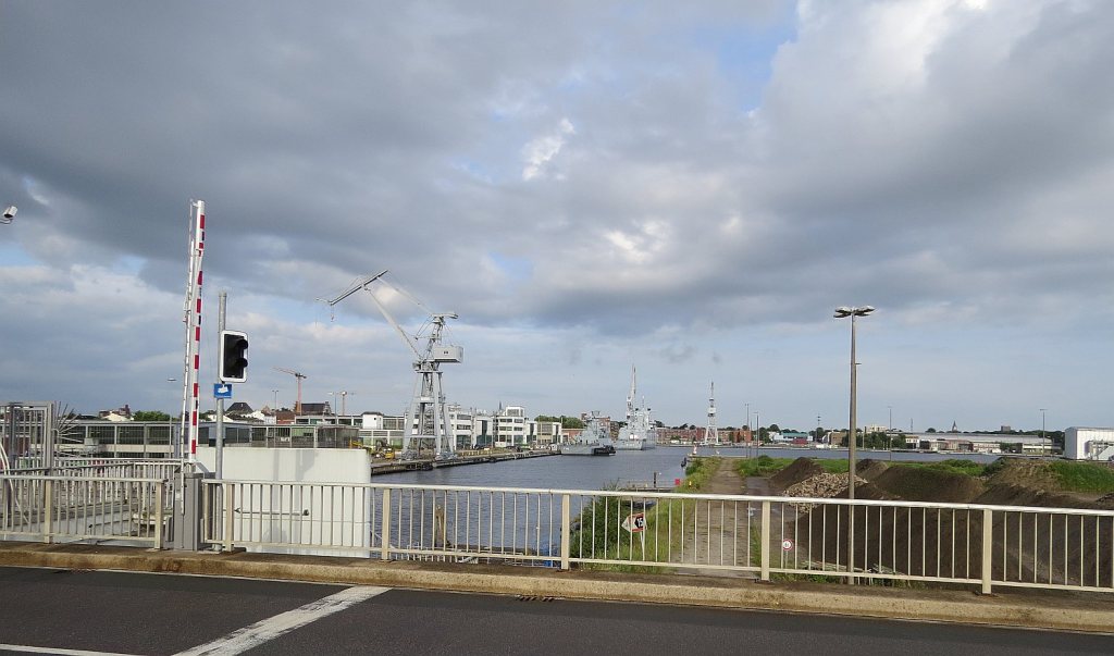 Links und rechts jeweils noch der Militärhafen. Weiter durch Industriegebiete erreichte ich den Rüstringer Berg.