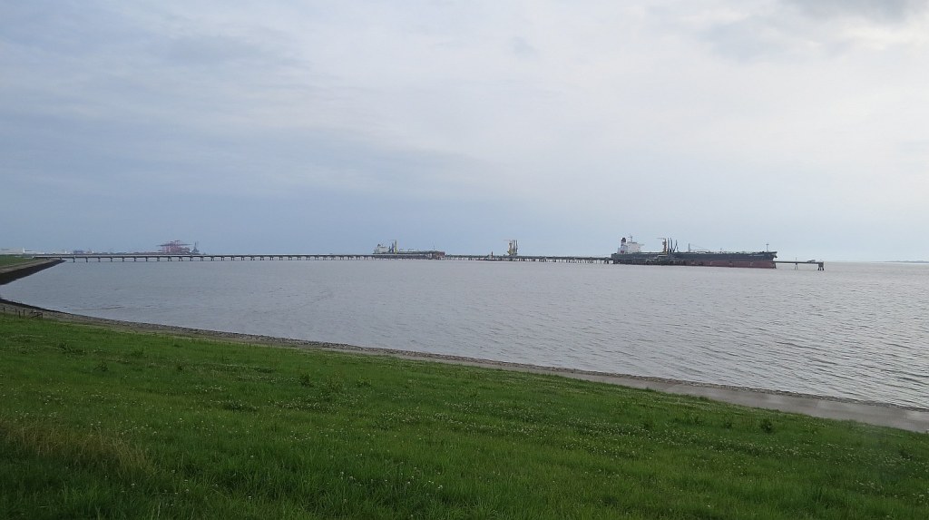 Kurz vor Hooksiel hat Bremerhaven noch Anleger für Öltanker. Man kann nur hoffen, dass dort nie etwas passiert – die Anleger liegen direkt am Nationalpark Wattenmeer.