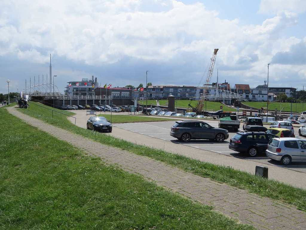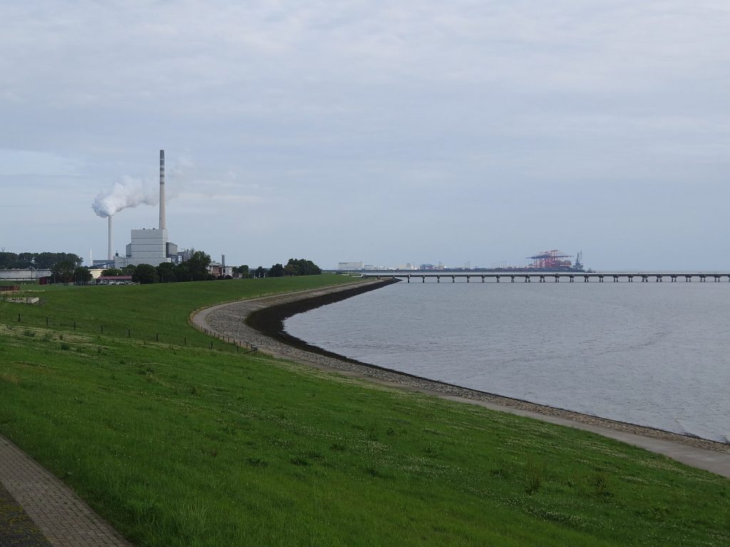 Die Niedersachsenbrücke und der JadeWeserPort sind schon zu sehen.