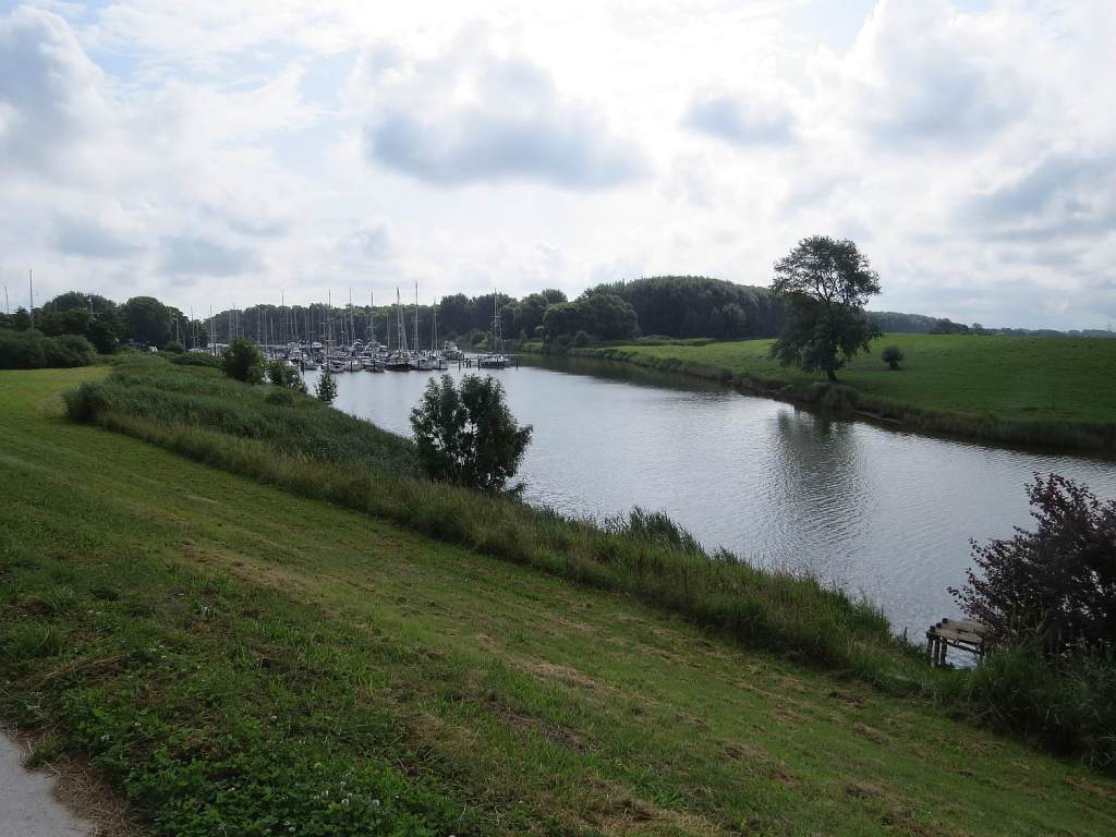 Der weitere Weg am Hooksieler Binnentief war für mich auf dieser Tour wieder einmal eine Erholung. Kein Deich, kein Watt – ein von Bäumen und Sträuchern gesäumter Weg. Sehr schön. Nach Hooksiel folgen einige kleinere Marinas.