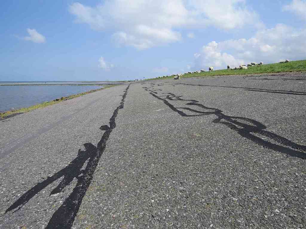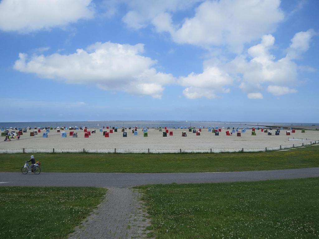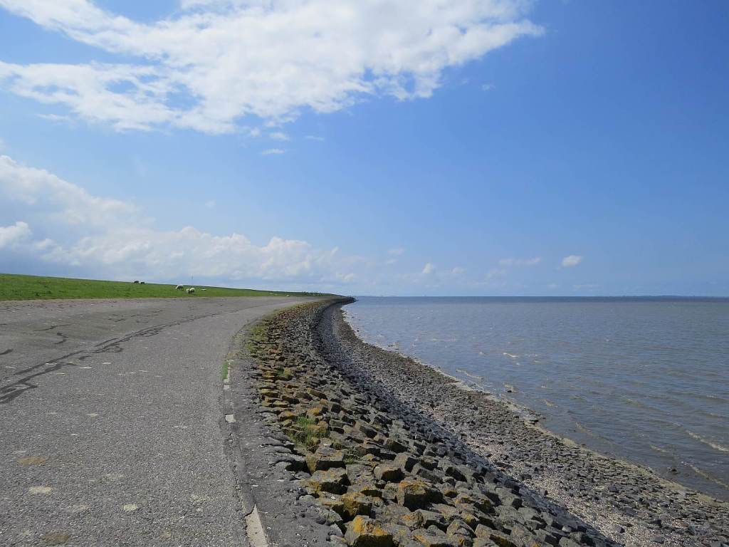 Zwischen Neuharlingersiel und Bensersiel konnte ich recht lange auf dem Außendeich fahren. Allerdings fährt man dabei immer etwas …