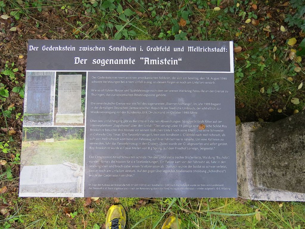 Etwas ist mir dann aber doch aufgefallen. Am 18.08.1946 – in Zeiten des kalten Krieges – ist an der Straße nach Sondheim ein Wagen mit US-Soldaten verunglückt. Dabei verstarb ein 19-jähriger Mensch.