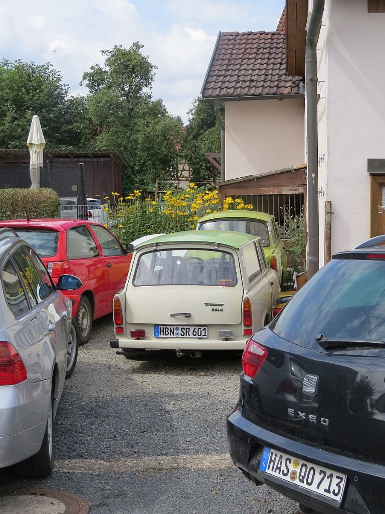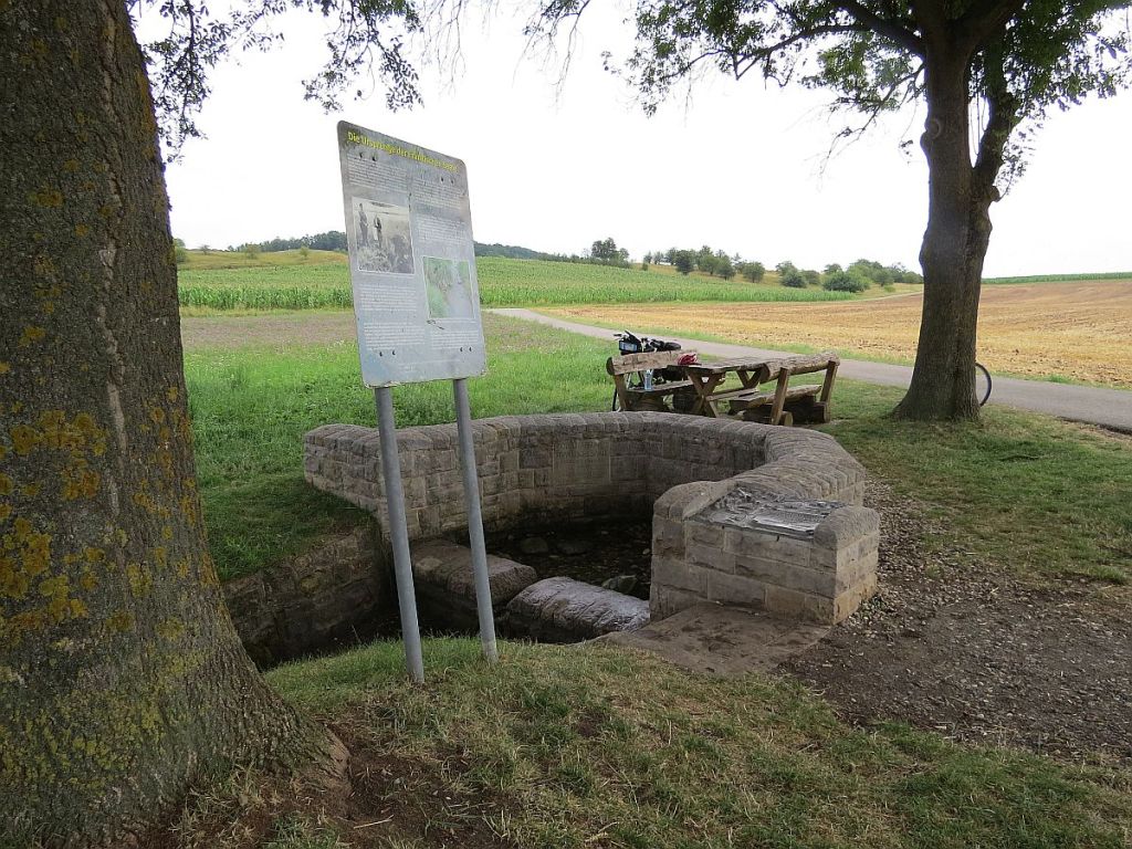 Heute ging es mal durch Bayern und dann mal wieder durch Thüringen. In Bayern war heute sogar Feiertag, aber nur in den Orten mit überwiegend katholischem Glauben. So fuhr ich durch viele schöne kleine Ortschaften mit den Namen Immelshausen, Eyershausen, Alsleben, Hellingen, Gleismuthhausen, die zum Teil im Naturpark Haßberge liegen. Bei Alsleben kommt man zur Quelle der Fränkischen Saale. Dort traf ich einen Mann, der an dieser Stelle immer Wasser für seine Bienen holt. Soll sehr gesund ein. Habe auch einen Liter für die weitere Fahrt mitgenommen.