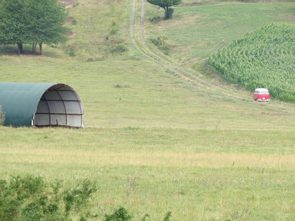 Vor ein paar Tagen habe ich einen rot-weißen Bulli den Kolonnenweg hochfahren sehen.