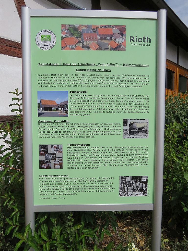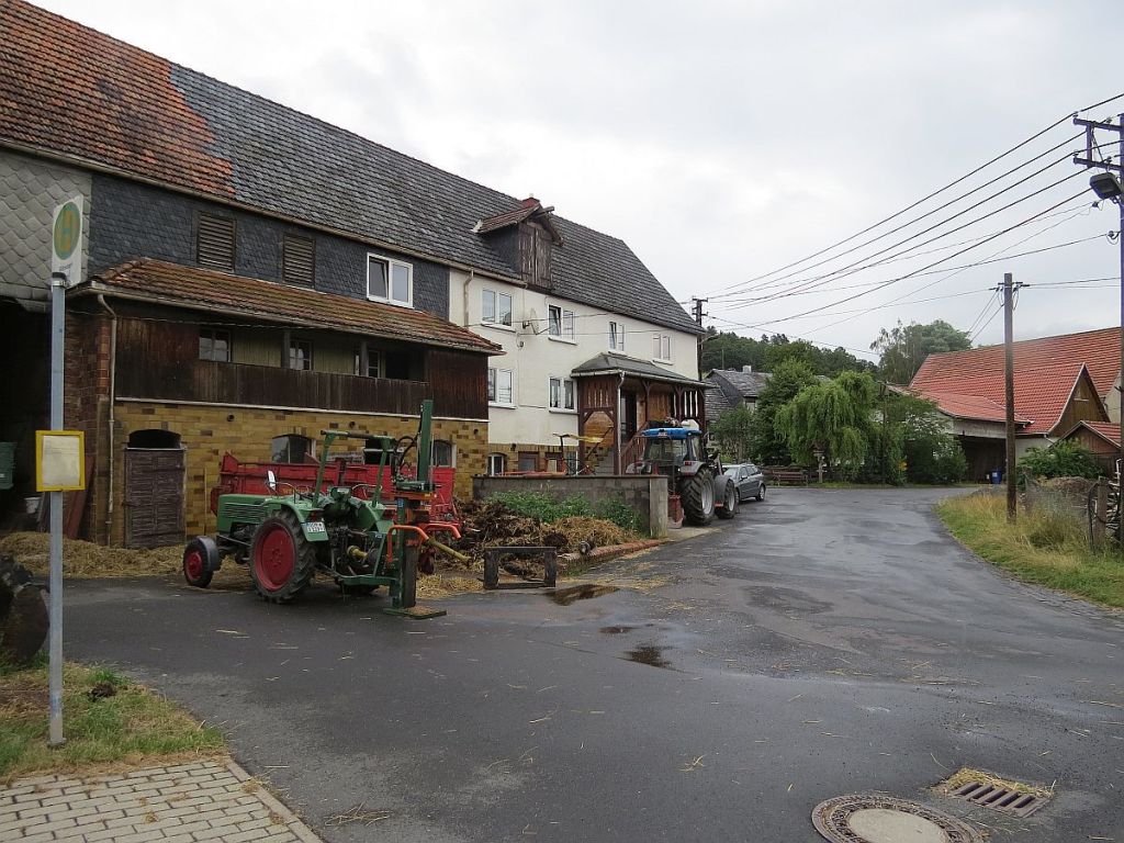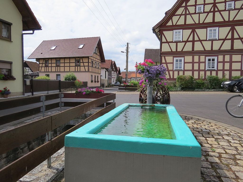 Stellvertretend für alle Orte hier ein paar Bilder aus Rieth. (Ich hatte Rieth deshalb oben in der Auszählung nicht erwähnt) Rieth hat mir von den Orten auch am besten gefallen. Hier haben Sie noch ganz viele Erdkeller, insgesamt 5 Brunnen, die von einer Quelle gespeist werden, alte Lautsprecher an den Telegrafenmasten und eine eigene Brauerei für die Bewohner. So wie hier auch, gibt es dies auch noch in anderen Ortschaften. Auch viele Backhäuser werden noch gemeinsam genutzt. Hier tauschte ich den letzten Rest Saalequellwasser gegen Quellwasser aus Rieth.