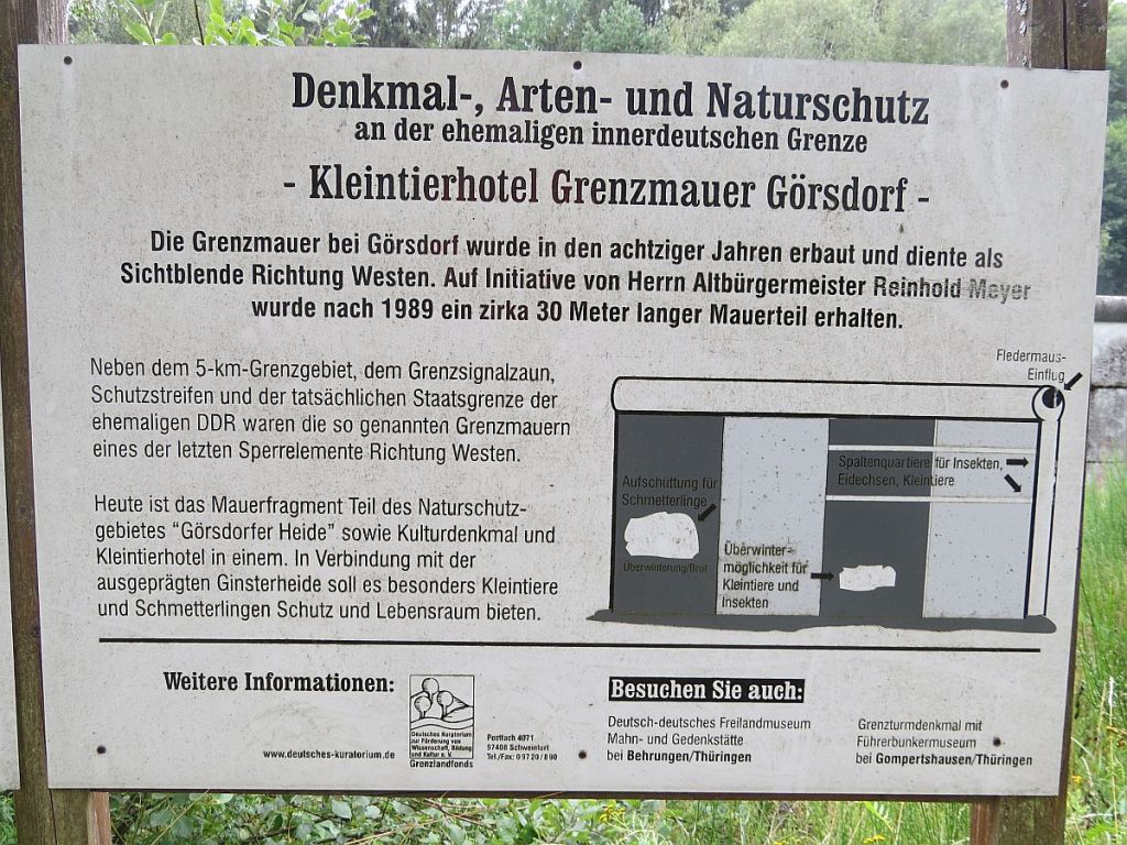 Die schönsten Momente des Tages hatte ich in Görsdorf. Hier stehen noch rund 30m alte Mauerreste. Der Ort lag direkt an der Grenze und hat Glück gehabt. Die Bewohner durften bleiben, haben aber dafür in Richtung Westen eine Mauer erhalten. Heute dienst sie dem Naturschutz.