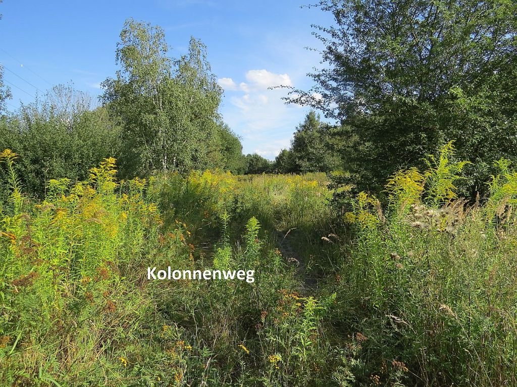 Und auf einem Wegweiser wird hier ausdrücklich in Richtung Kolonnenweg hingewiesen. Was es nicht alles so gibt.