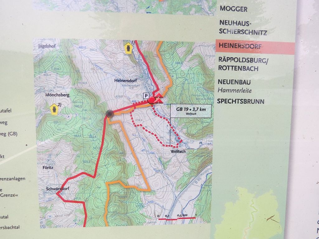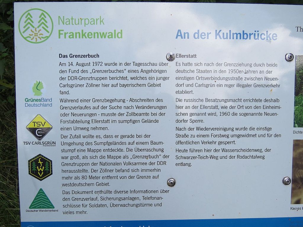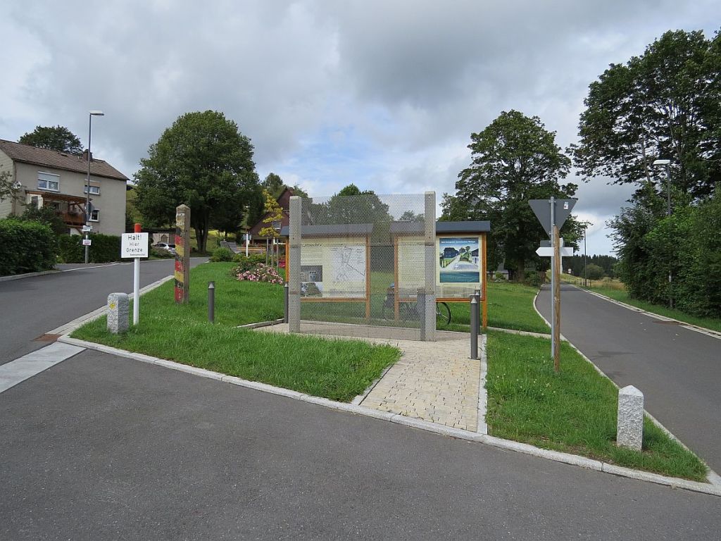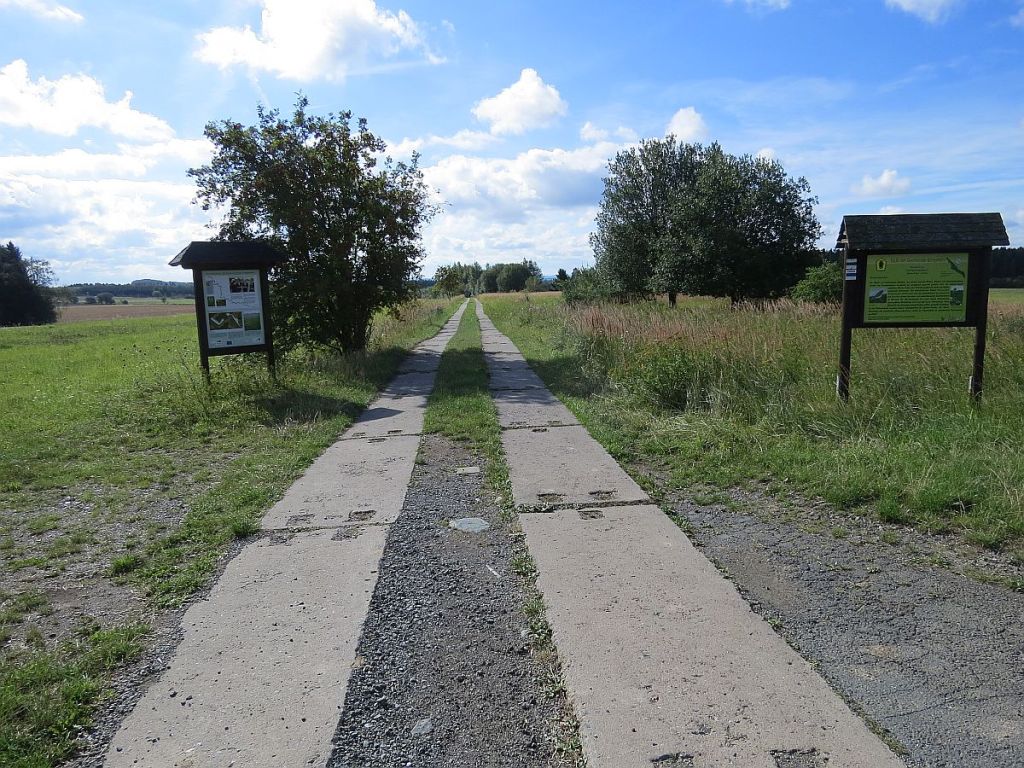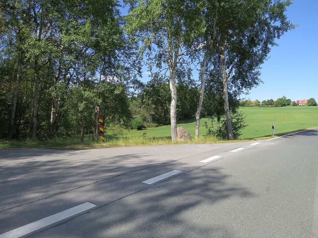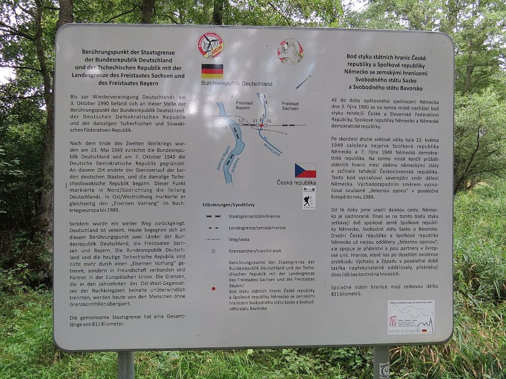 Ein recht unscheinbarer Platz, mitten im Grünen und mit gar nicht so viel Information auf deutscher Seite. Auf der tschechischen Seite gibt es wenigstens noch Bänke. Getroffen habe ich hier auch nur Radler aus Tschechien.