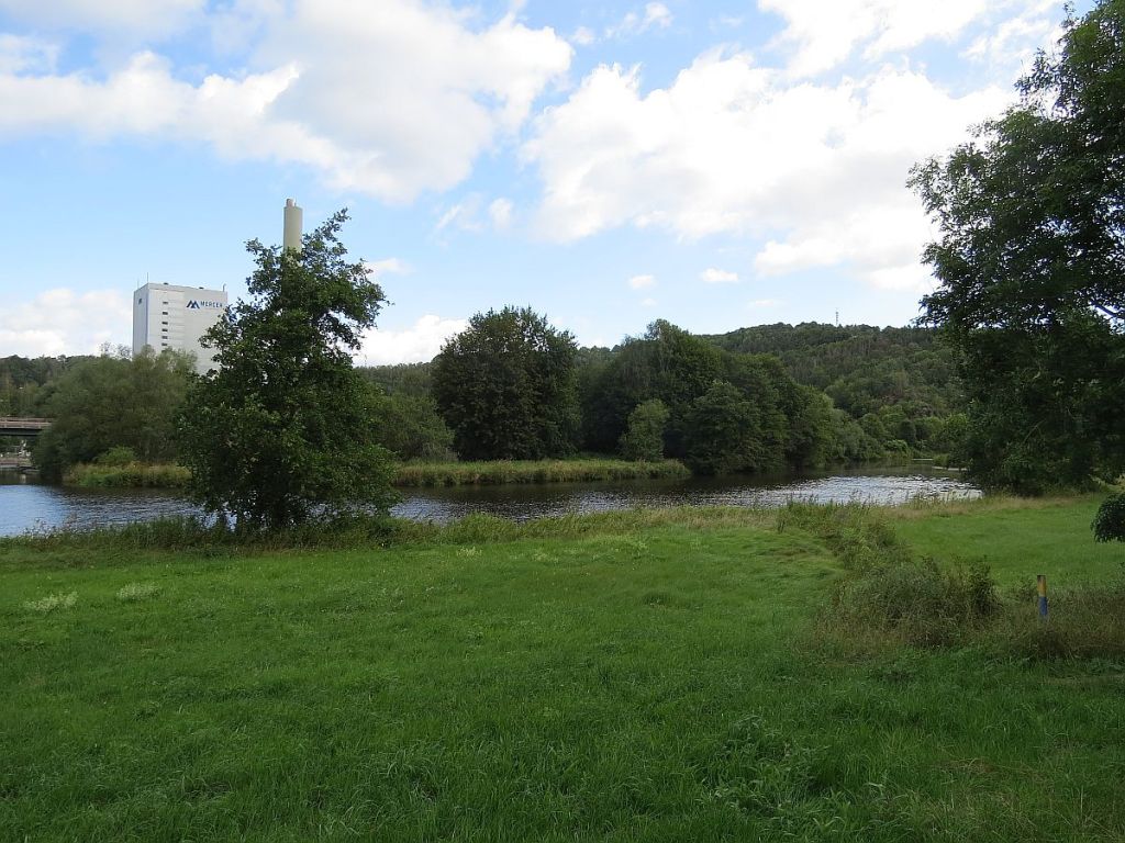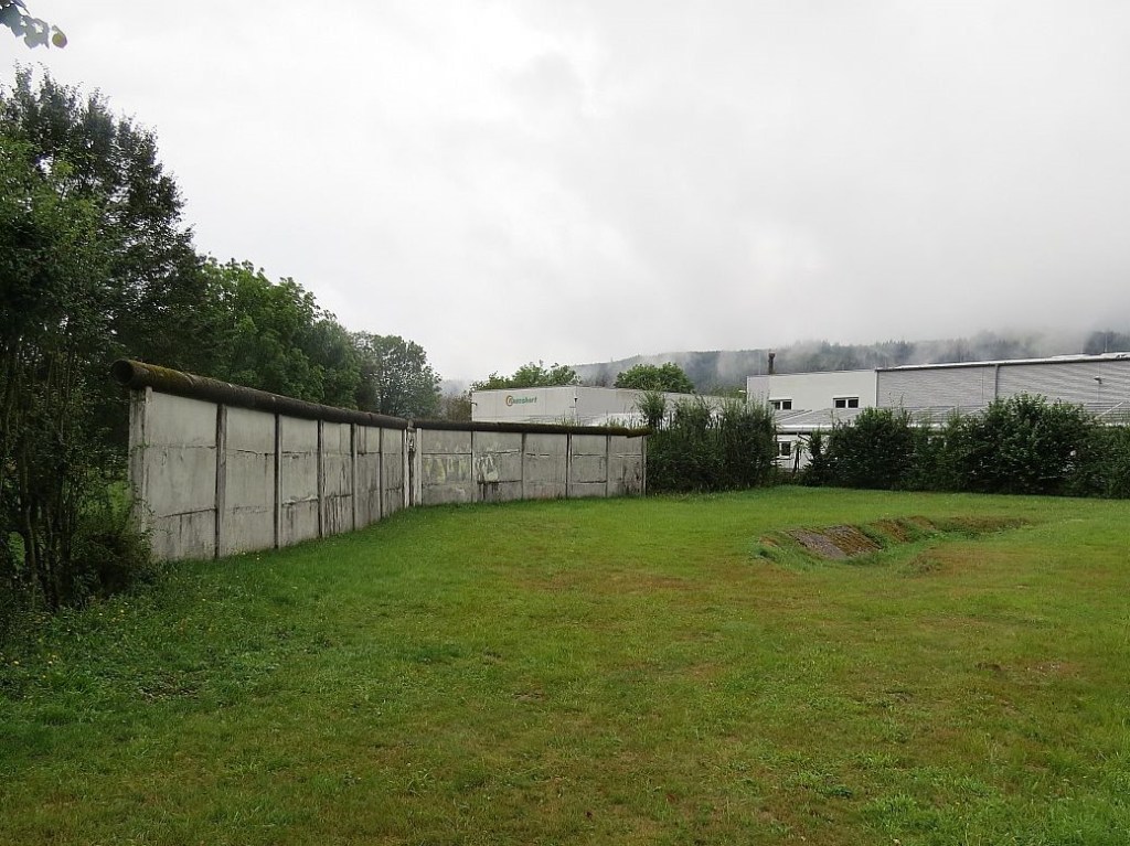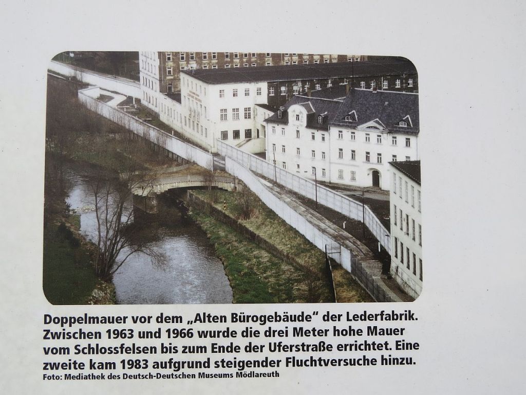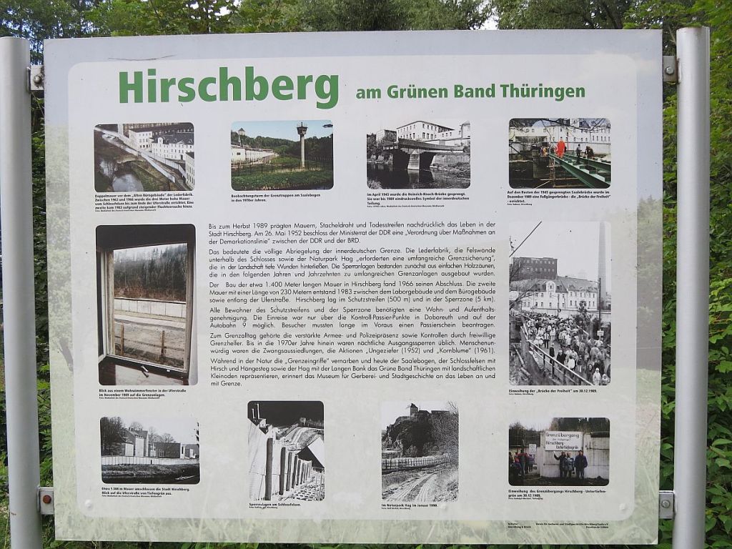 Hirschberg war zu DDR-Zeiten nach Westen mit einer etwa 1500 Meter langen Mauer abgegrenzt und die Brücke über die Saale gab es auch nicht mehr. Auch hier steht nichts mehr von der Mauer.