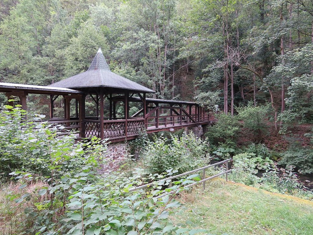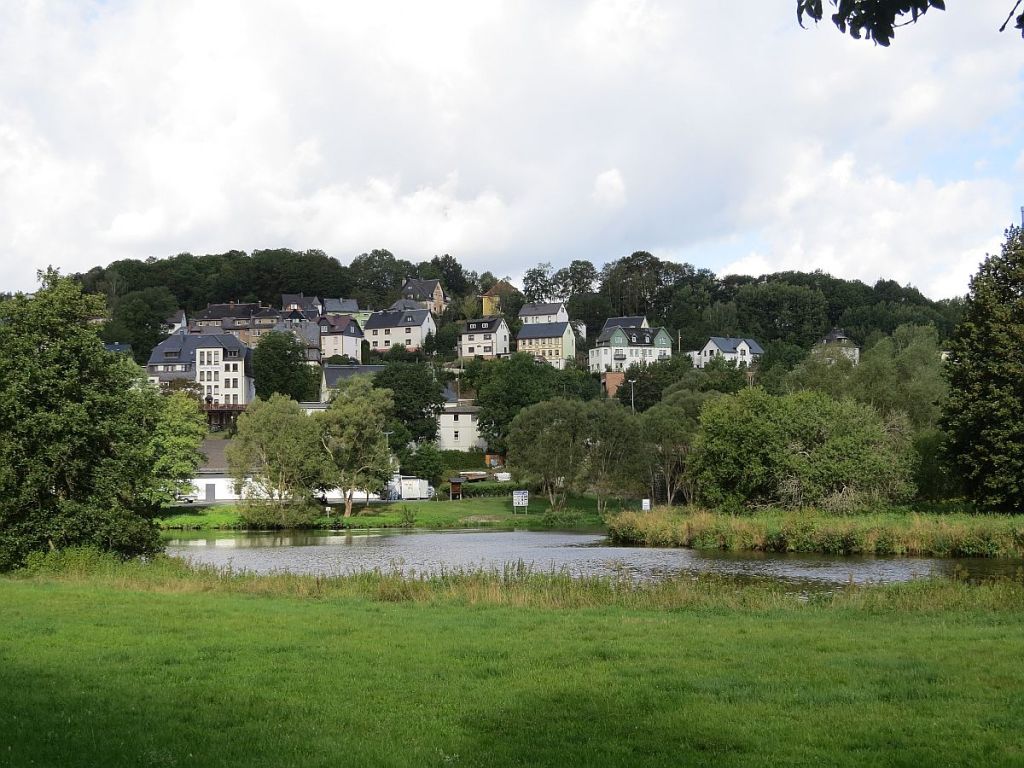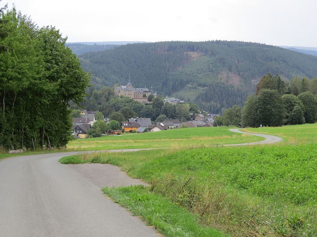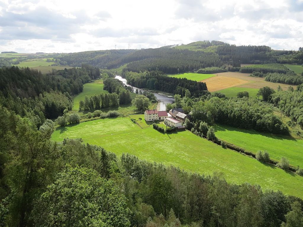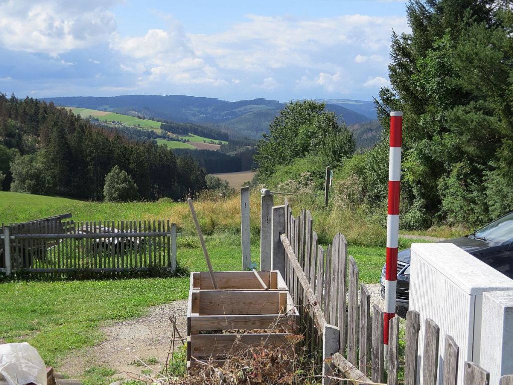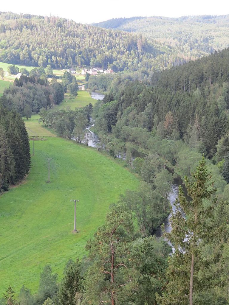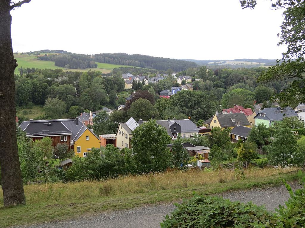 Von Rudolphstein hat man einen schönen Blick auf Pottiga und die Aussichtsplattform. Also einmal hinunter ins Tal und dann wieder hoch.