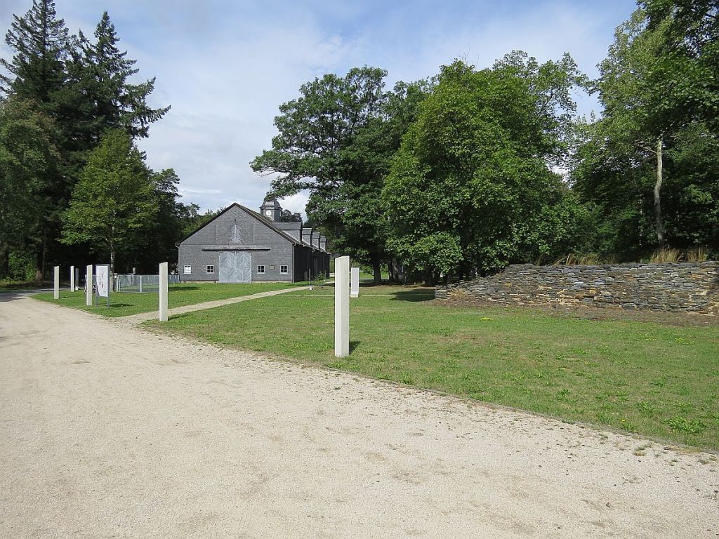 Früher in Sichtweite, heute durch Bäume verdeckt, steht ein Wachturm, der jetzt ein Quartier für Fledermäuse, Vögel und Insekten geworden ist.